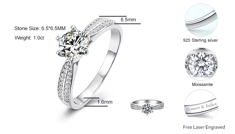 1.0 Ct Heart-Cut Moissanite Engagement Ring – 925 Sterling Silver Customizable Bridal Ring