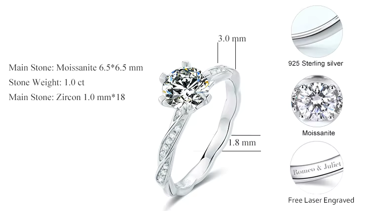 Main Stone: Round-Cut Moissanite Diamond 1.0ct