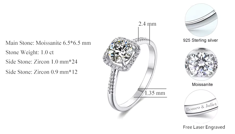 Celebrate your forever moments with these elegant 1.0ct Moissanite Couple Rings, thoughtfully crafted from 92.5% pure sterling silver and featuring brilliant D-color VVS1 moissanite diamonds. Designed in a classic style with a modern edge, each ring showcases a 6.5mm radiant-cut stone—delivering unmatched sparkle and sophistication.