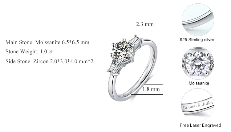 Main Stone: Moissanite (Heart-Cut, 6.5mm, 1.0ct)