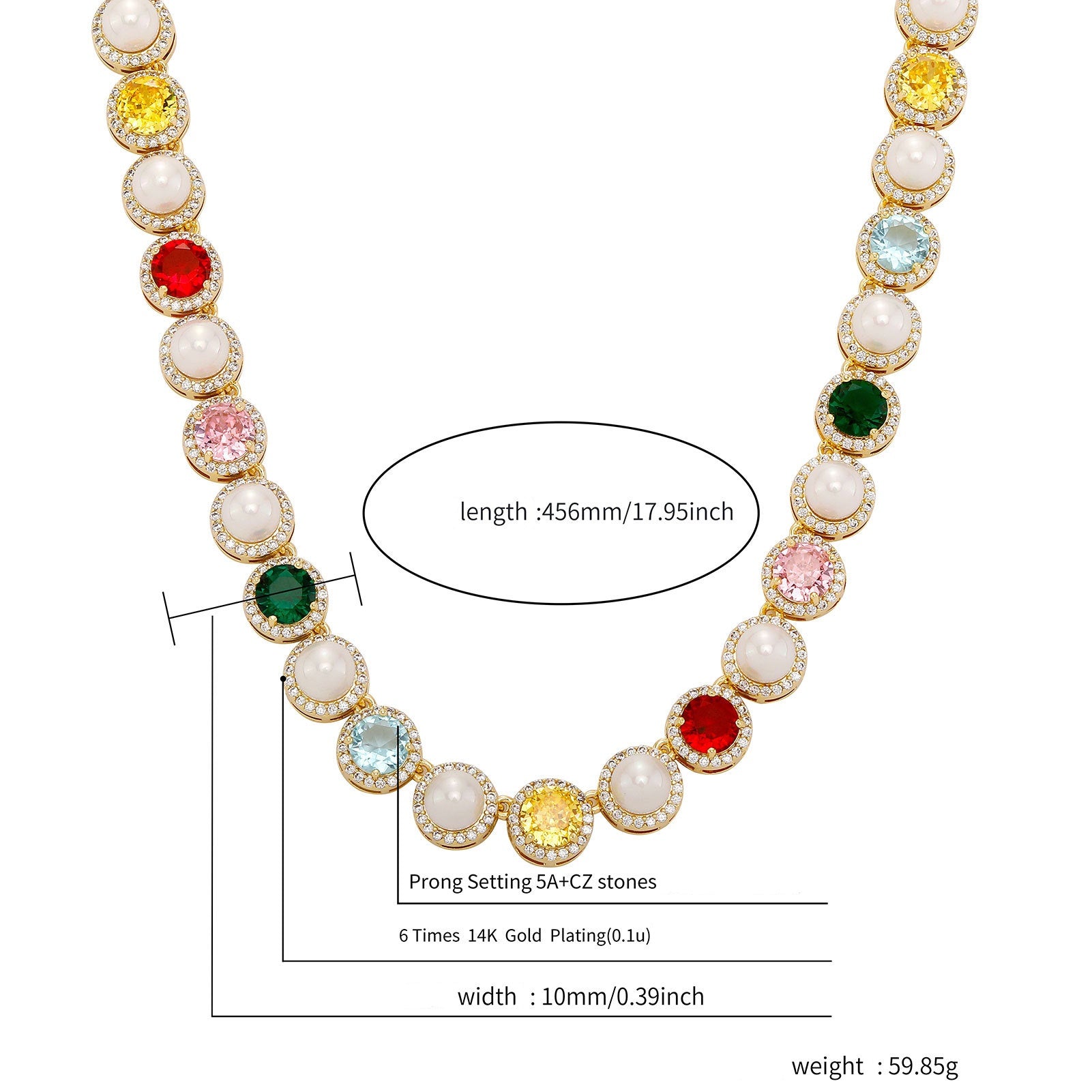 Multicolourful 10mm Iced Out Bling Clustered Tennis Chain – New Design Hip Hop 5A Zircon Round Square Necklace Bracelet