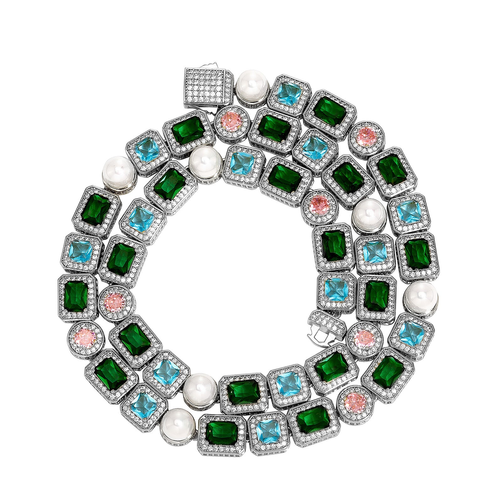 Get ready to shine with this vibrant, iced-out clustered tennis chain — a fresh drop for anyone serious about their hip hop jewelry style.