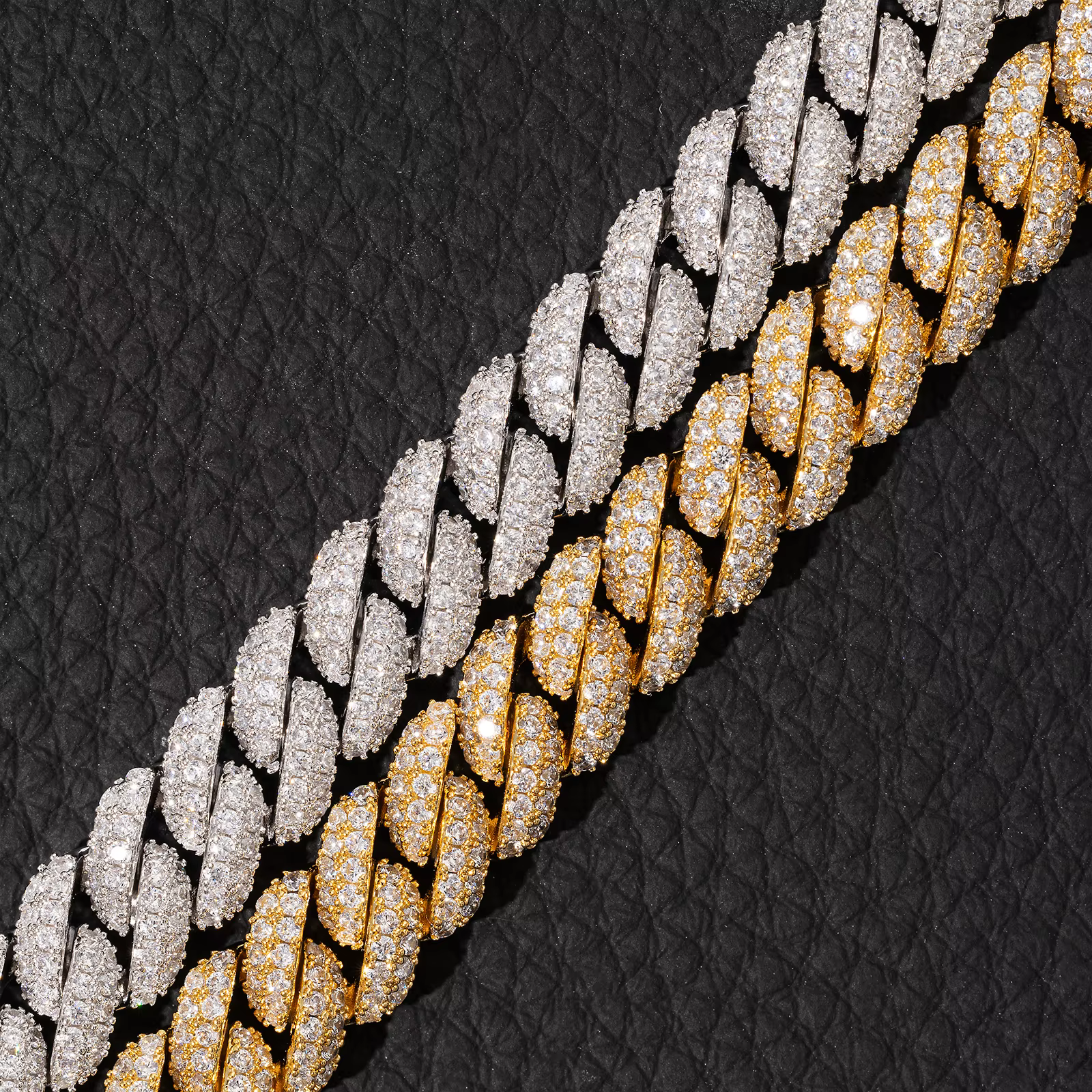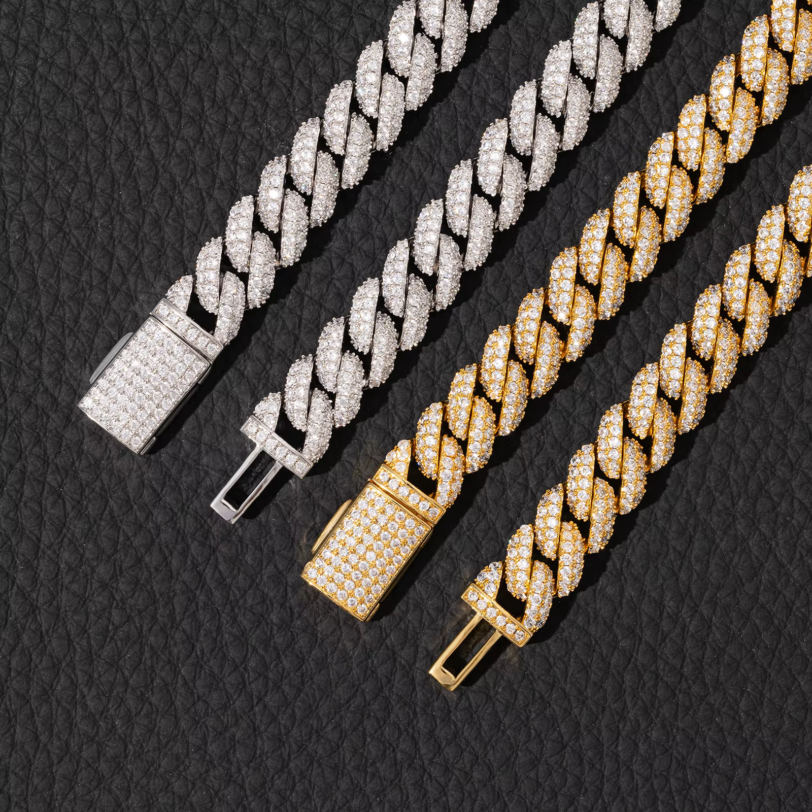 Featuring a two-row micro-insert setting for maximum sparkle and clean alignment, each link is finished in your choice of rhodium (white gold) or 18K gold plating. Available in bracelet (6''–8'') and necklace (16''–24'') lengths, this unisex Cuban chain set is designed to shine at any event—from club nights to formal occasions.