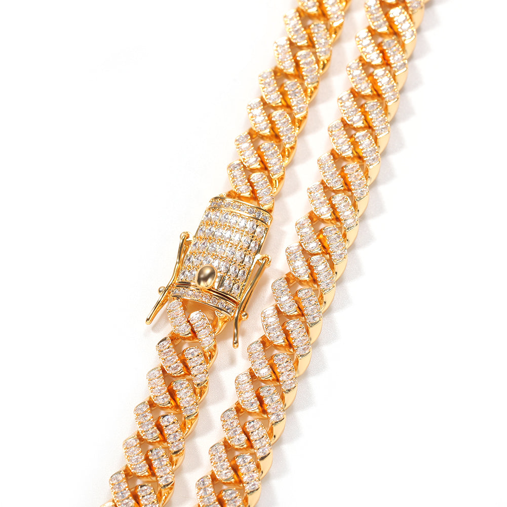 Hip Hop 12mm Cuban Link Solid Chain – Iced Out 18K Gold Plated Chain with CZ Stones for Men