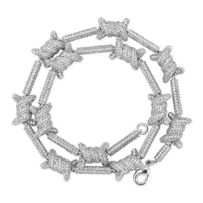 Break the mold with the edgy and elegant Barbed Wire Necklace from ICE STONE. This hip hop luxury piece fuses bold streetwear style with high-end details, featuring a barbed wire design crafted from durable copper and plated in rich 14K gold or sleek silver.
