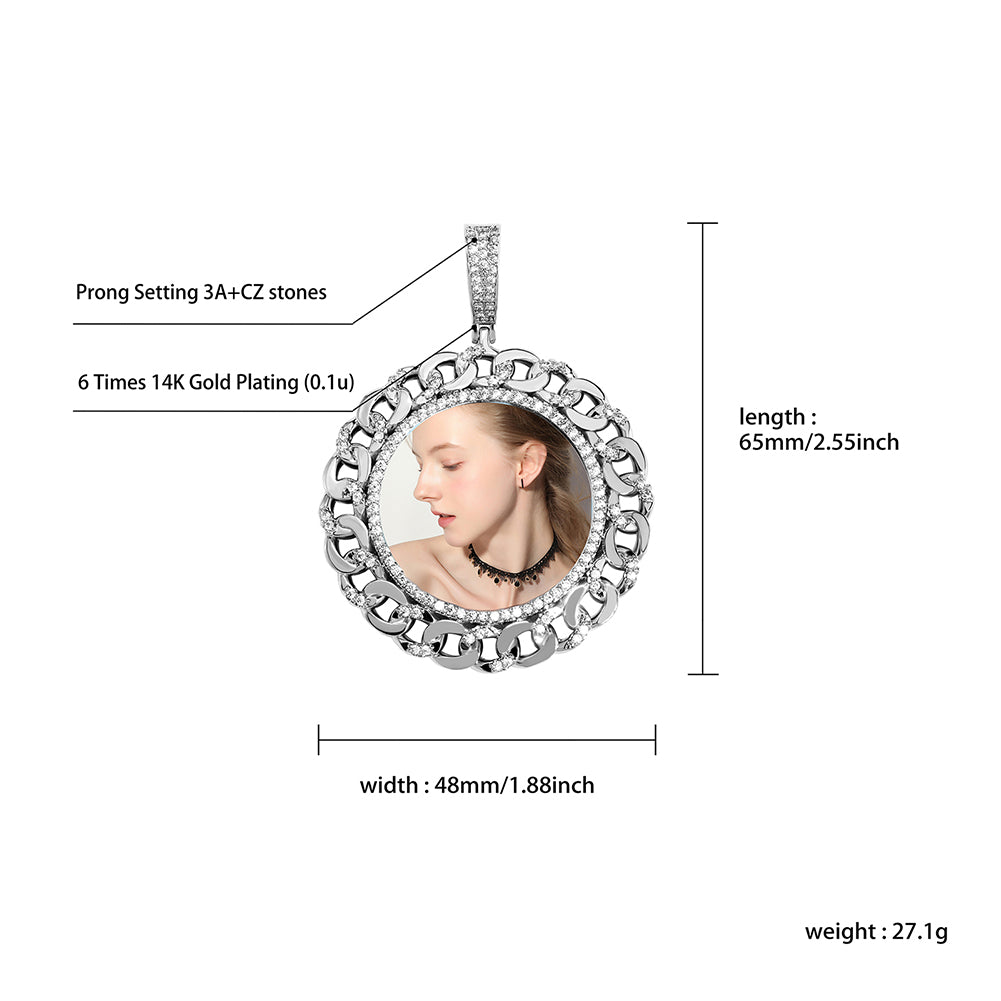 This memory photo pendantcan be personalized with your own photo, making it an unforgettable gift or keepsake. With its premium 14K gold or white gold platingand sparkling zircon, it provides a high-end look while carrying your memories.