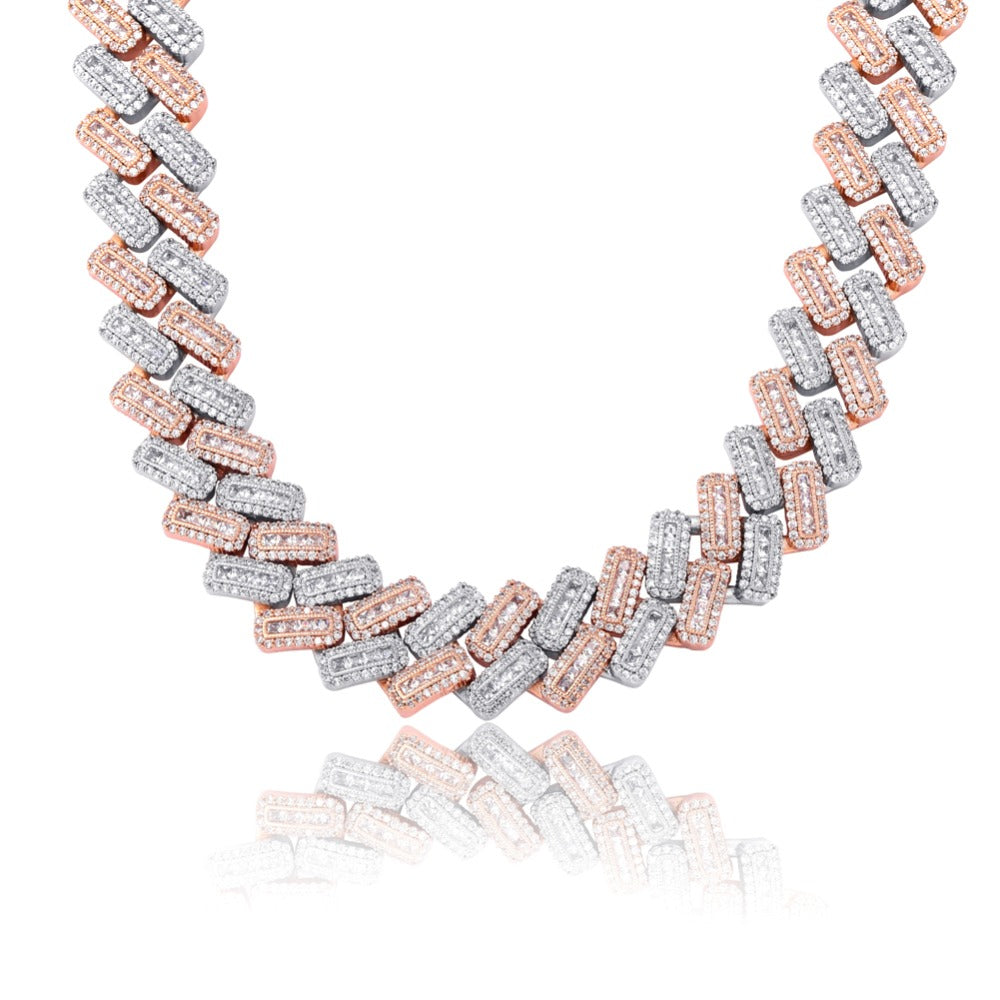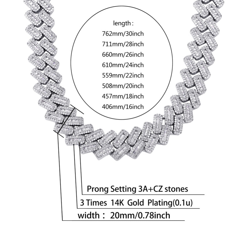 Crafted from high-quality brass and plated in solid 18K gold (also available in silver, rose gold, or a two-tone finish), this necklace fuses classic curb chain structure with the flair of modern hip hop jewelry. With a generous 14mm width and customizable lengths ranging from 16 to 30 inches, it’s designed for kings and queens who like their accessories loud and proud.