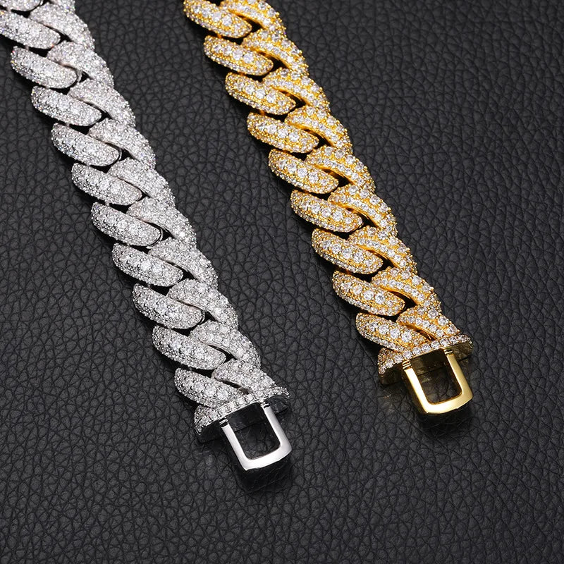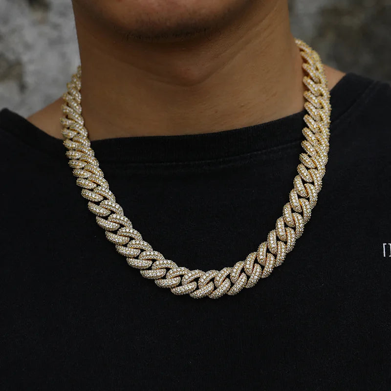 Featuring a bold 15mm width and three full rows of graduated-size princess-cut zircon stones, this iced-out chain is built for those who lead with style and never fade into the background.