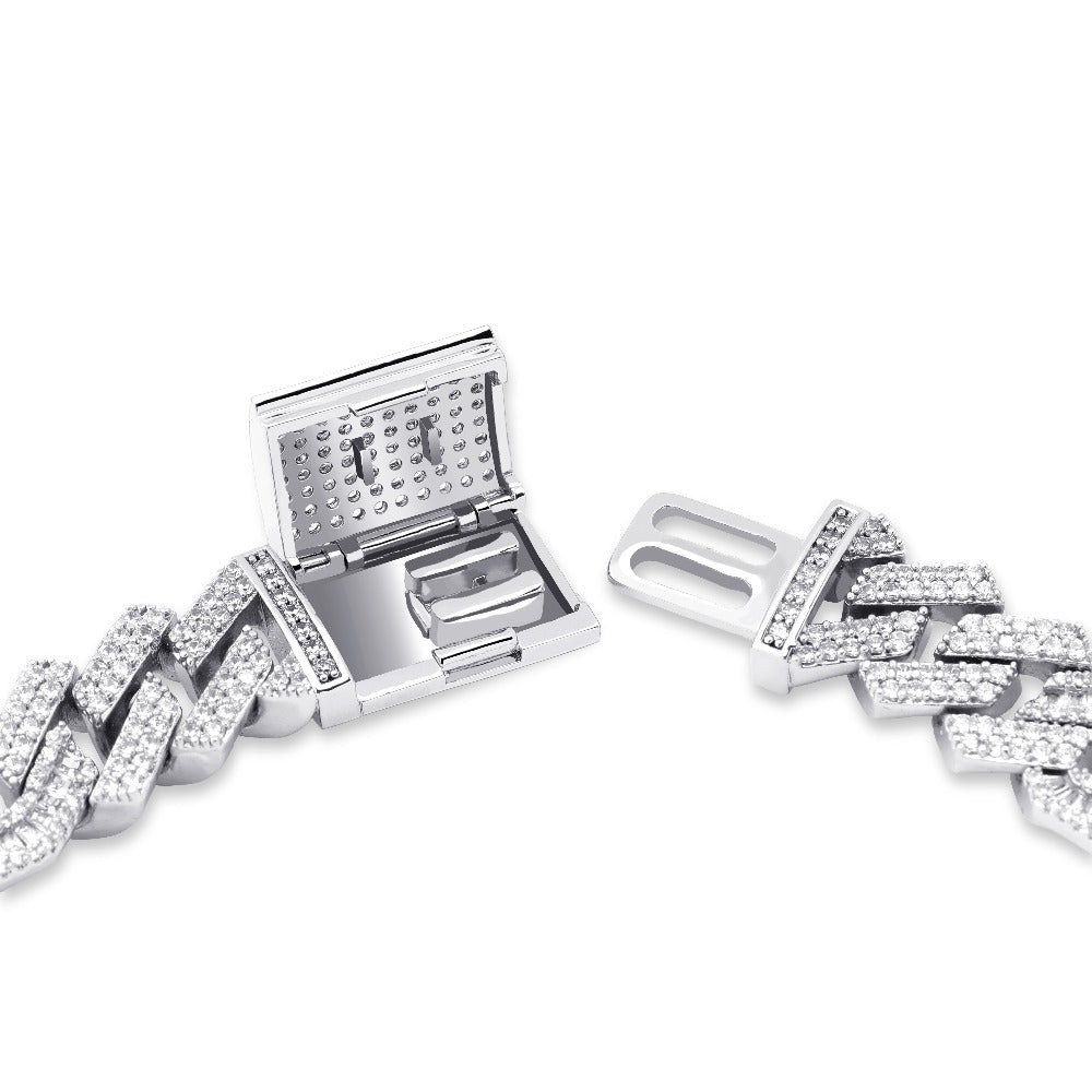 White Gold 15MM Polygon Style Fully Lab Diamond Iced Out Miami Cuban Link Chain Necklace