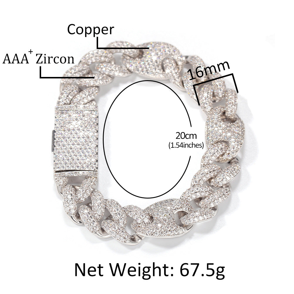 Introducing the ICE STONE 16mm & 12mm Miami Box Clasp Cuban Link Chain Necklace, a bold and luxurious piece that combines hip hop style with elegance. Crafted from brass and plated with 18K gold, silver, or rose gold, this necklace features iced-out cubic zirconia stones for a dazzling, attention-grabbing effect. Perfect for men, unisex, or women, this Cuban chain is the ultimate accessory to elevate any outfit.