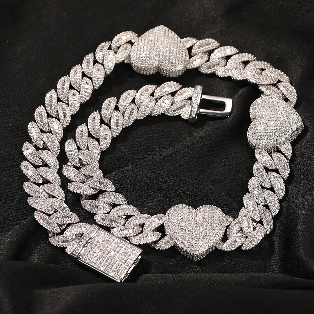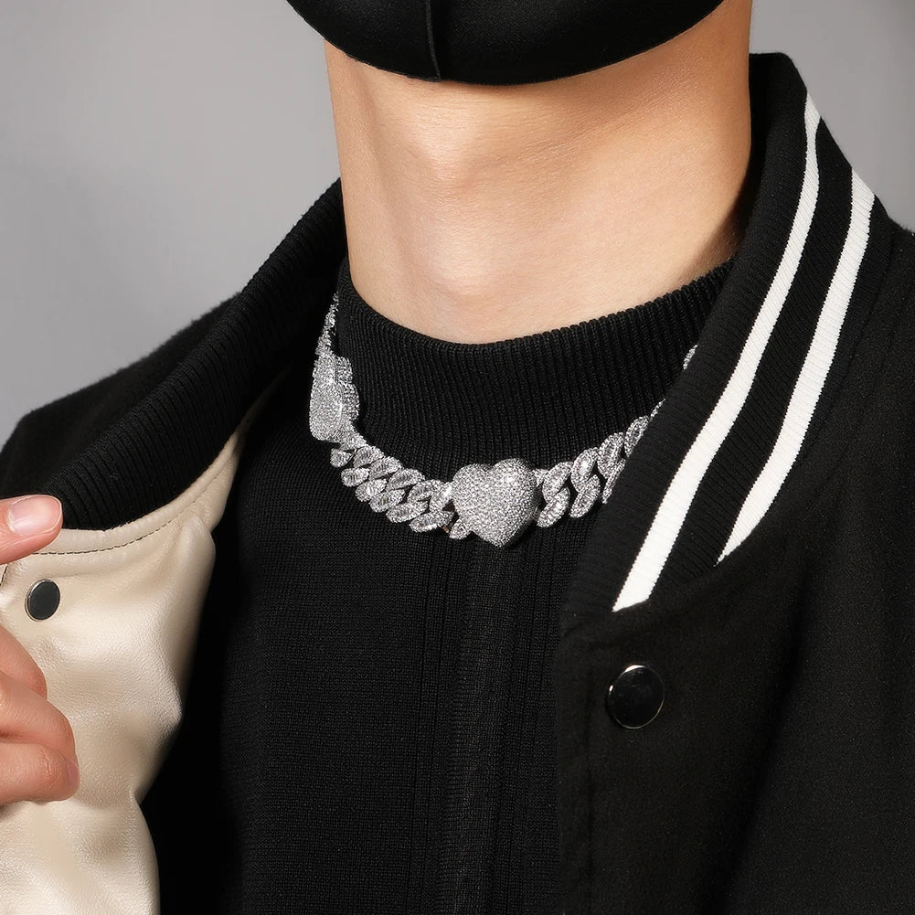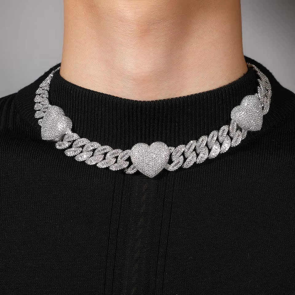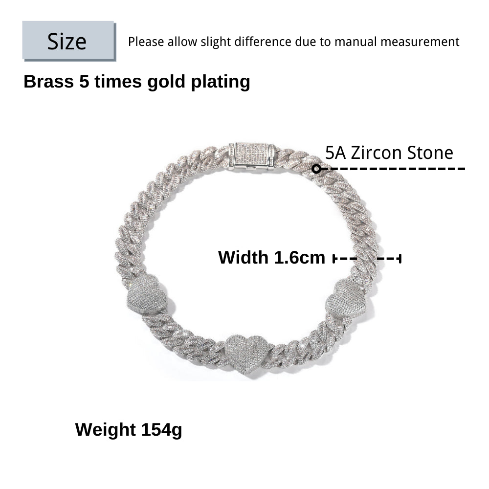 Design & Style: This 16mm Cuban link chain features a bold heart-shaped pendant with 5A cubic zircon for an iced-out effect, creating a perfect fusion of elegance and urban edge. Ideal for special occasions, this necklace is guaranteed to draw attention and add a luxurious touch to your look.