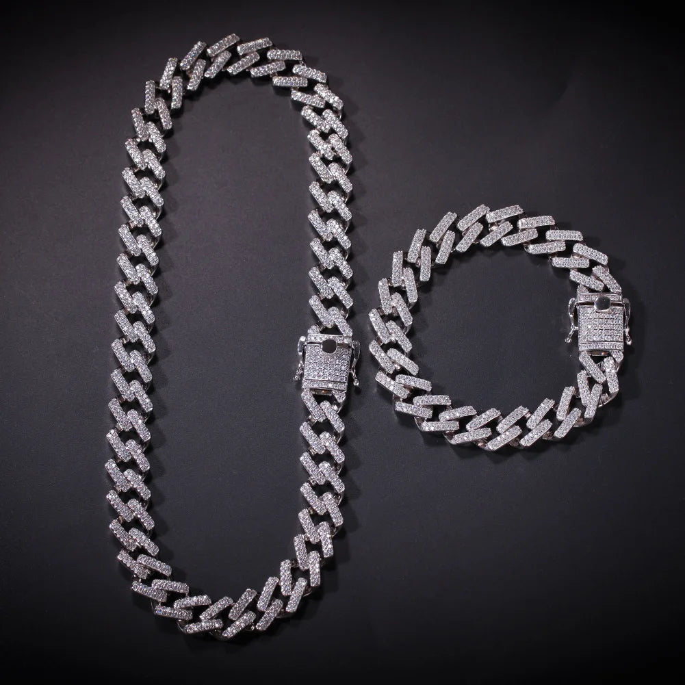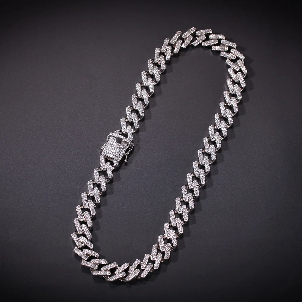 This Iced Out Cuban Link Chainfeatures stunning zircon stones inlayed with micro insert technology, creating a dazzling, sparkling effect. Whether you're looking for a fashionable accessory for yourself or a gift for someone special, this Cuban Chainoffers versatility, as it comes in goldor white gold, with custom lengths available.