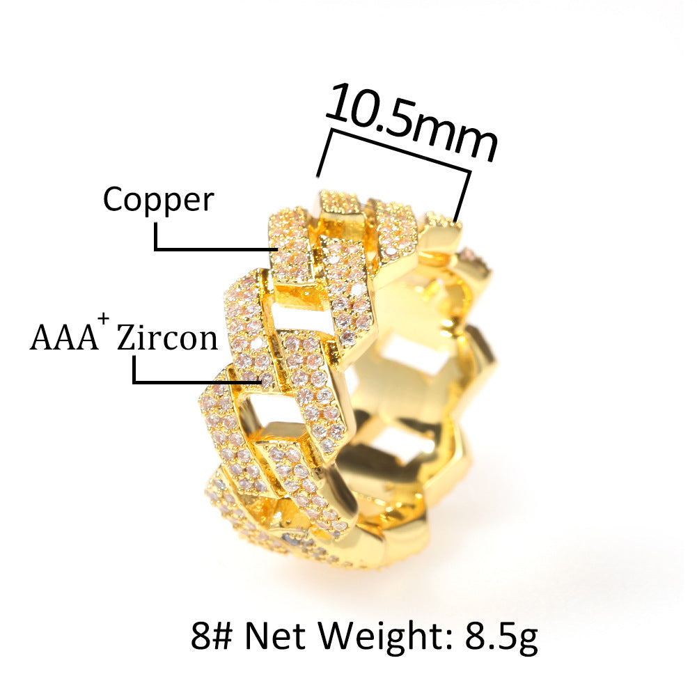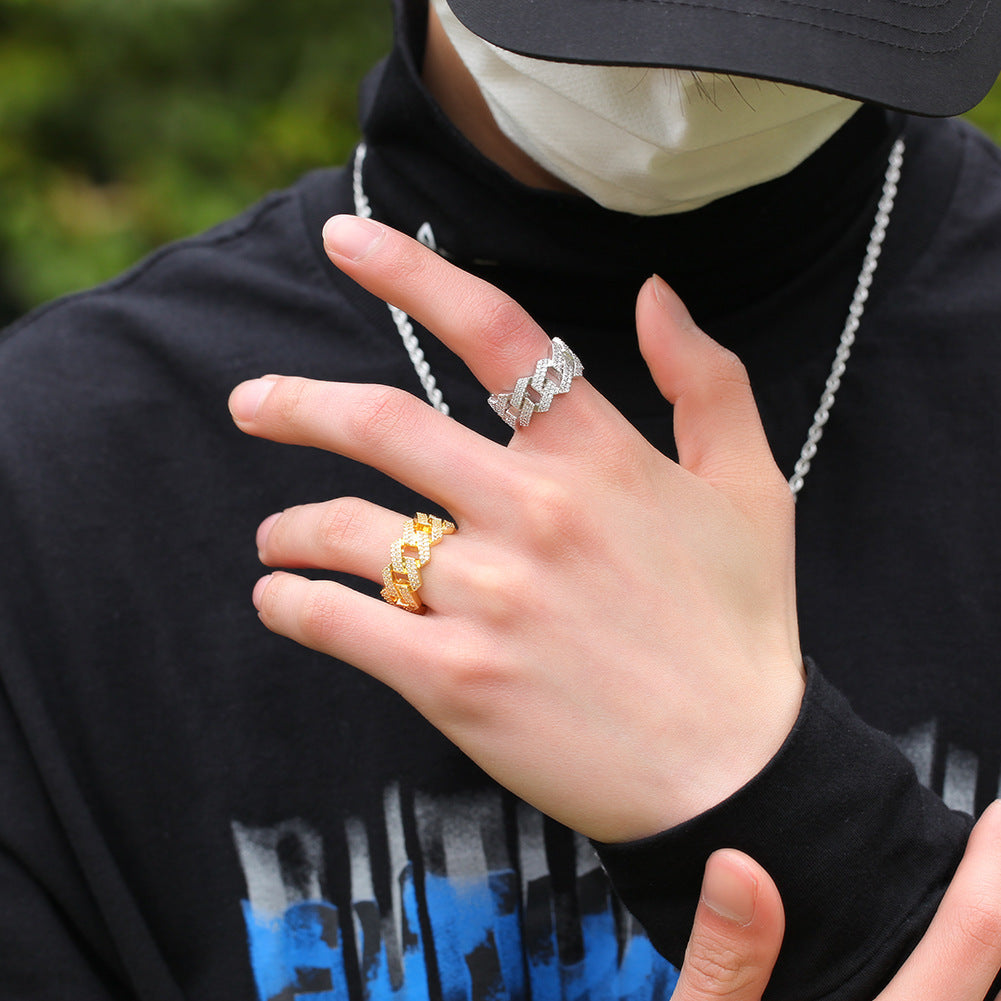 ICE STONE Iced-Out Cuban Link Ring – 18K Gold & White Gold Hip-Hop Drip