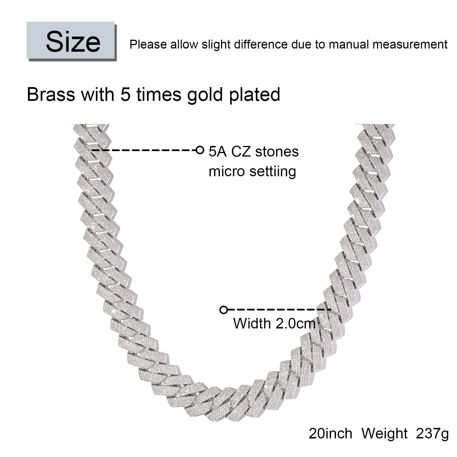 Make a bold statement with the ICE STONE 18mm Iced Out Cuban Link Chain, featuring a unique 4-row diamond design for a luxurious, eye-catching look. This stunning piece is crafted from brass and plated with 18K gold or rhodium, making it both durable and opulent. The chain is adorned with 5A cubic zirconia stones, creating an intense iced out effect that shines brilliantly from every angle.