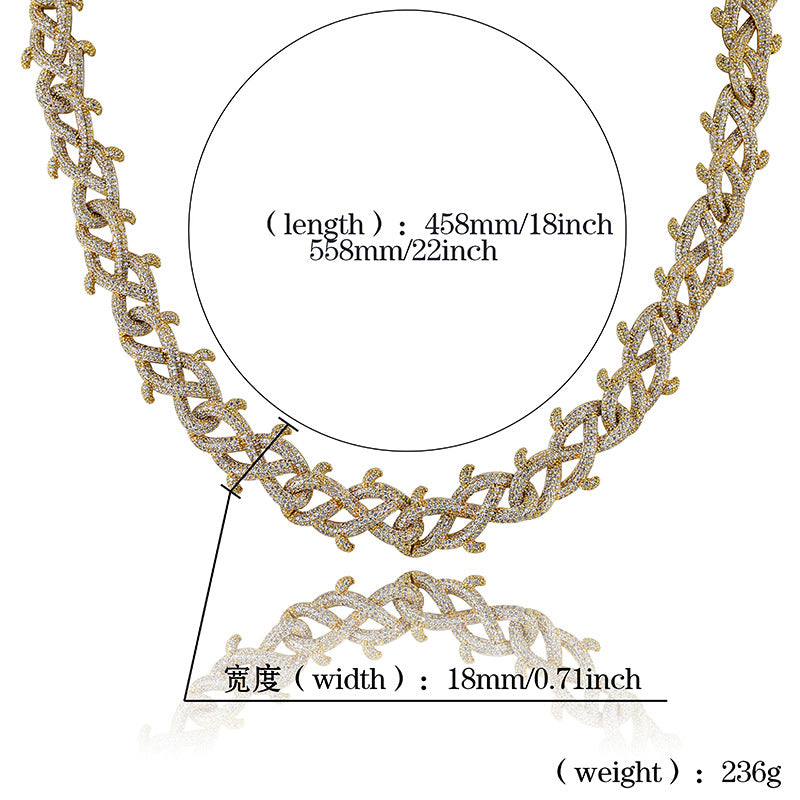 18mm Gold Plated Dog Collar Cuban Chain – Dangly Diamond-Inlaid Statement Necklace by ICE STONE