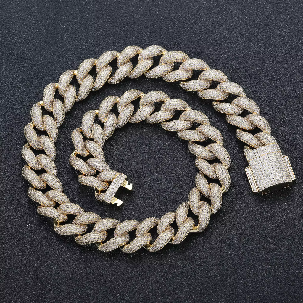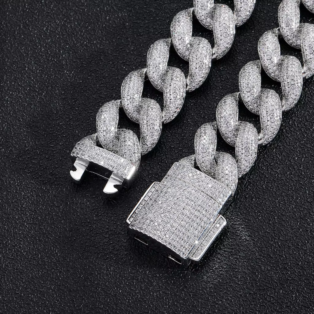 Available in white gold and 18K gold plating, each link is meticulously claw-set with high-grade moissanite, offering all the flash of real diamonds—without the five-figure price tag. Whether you're layering up or wearing it solo, this hip-hop staple is certified by third-party appraisal and made to last.