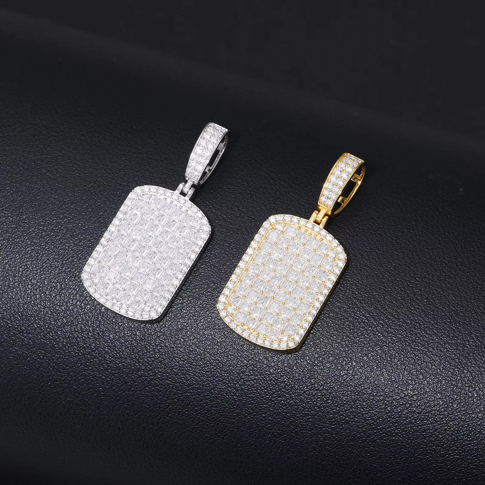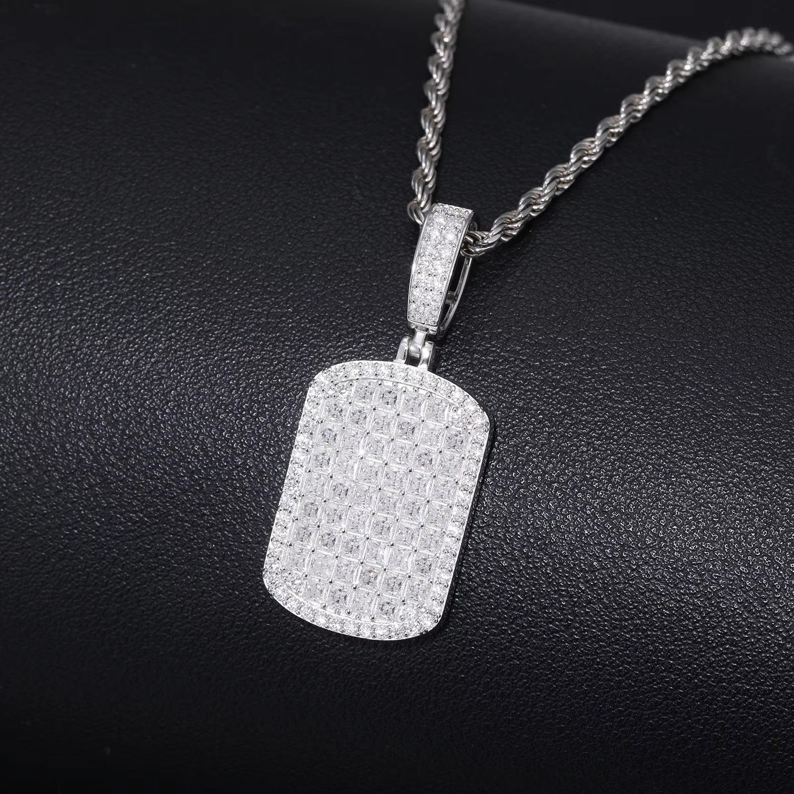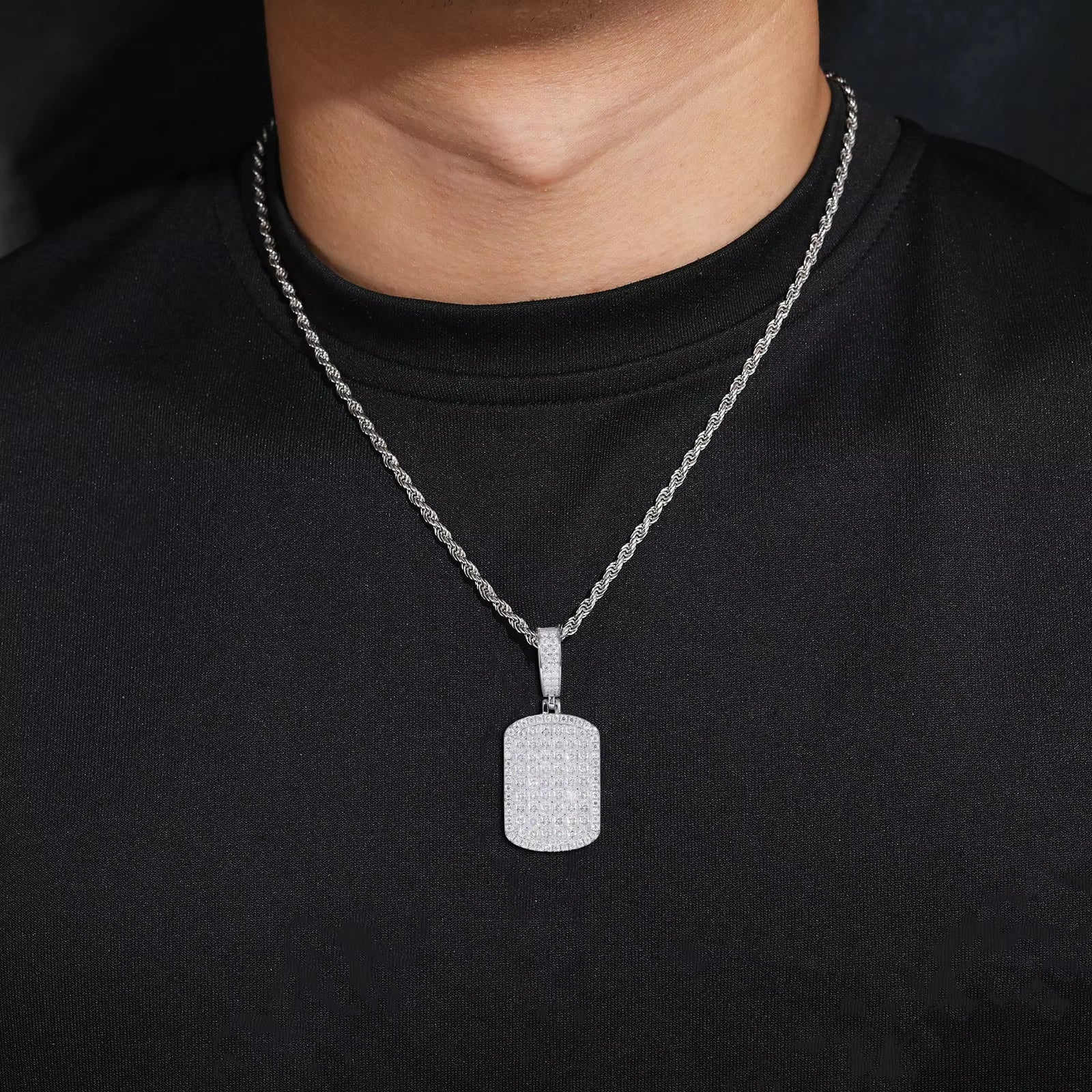 2025 Hot Unisex 925 Sterling Silver Sparkling Round Brilliant Cut VVS D Moissanite Diamond Dog Tag Pendant Necklace Jewelry