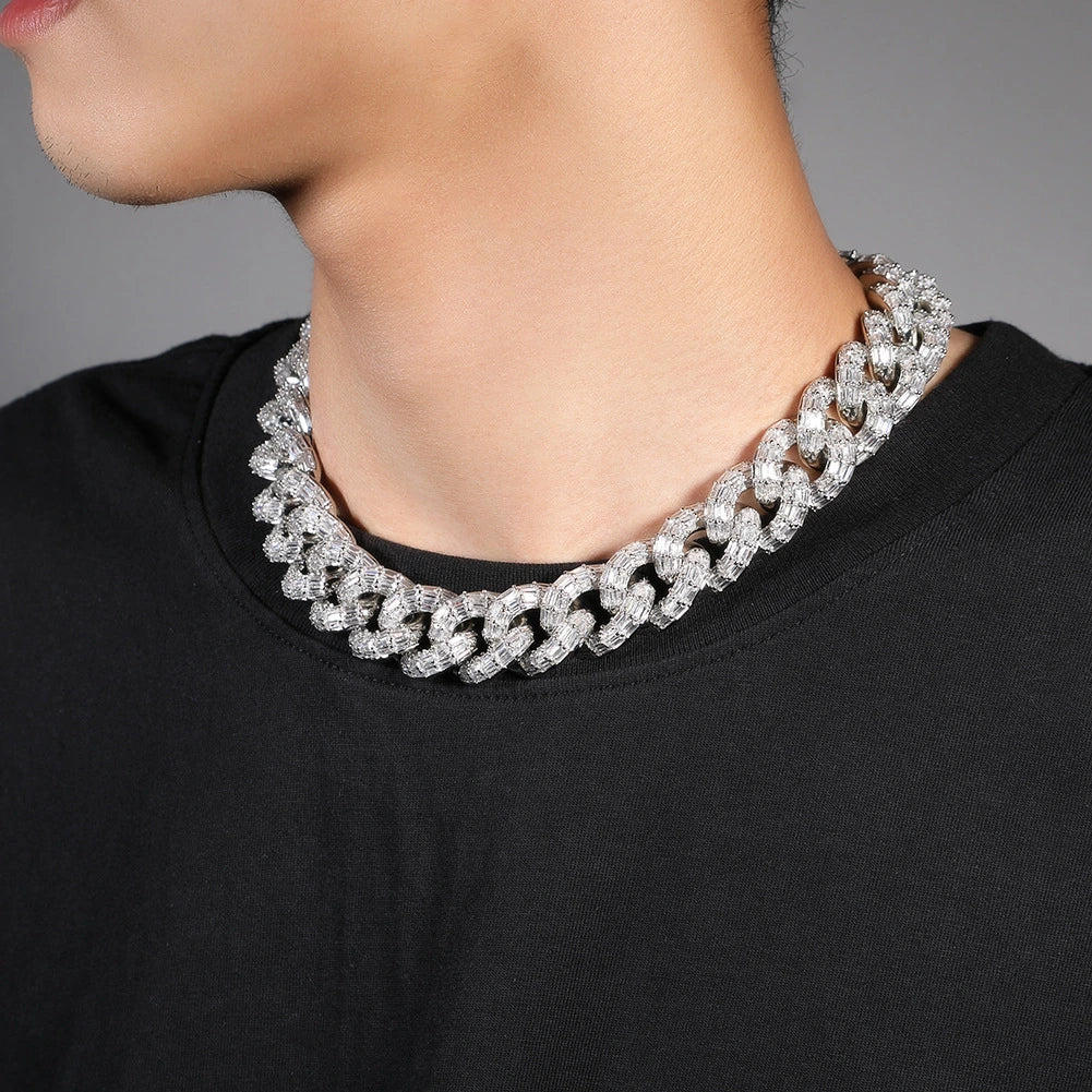 Level up your bling game with the ICE STONE20mm Punk CZ Baguette Cuban Link Chain, designed for those who want to make a bold statement with every wear.