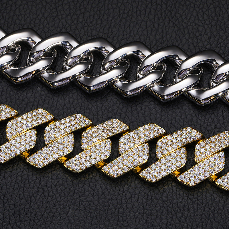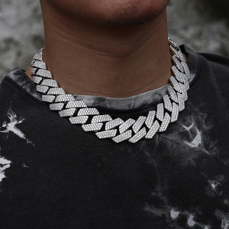 Featuring 22mm wide links, this Miami-style Cuban chain is prong-set with sparkling princess-cut zircon stones, offering a diamond-like shine that’s impossible to ignore.