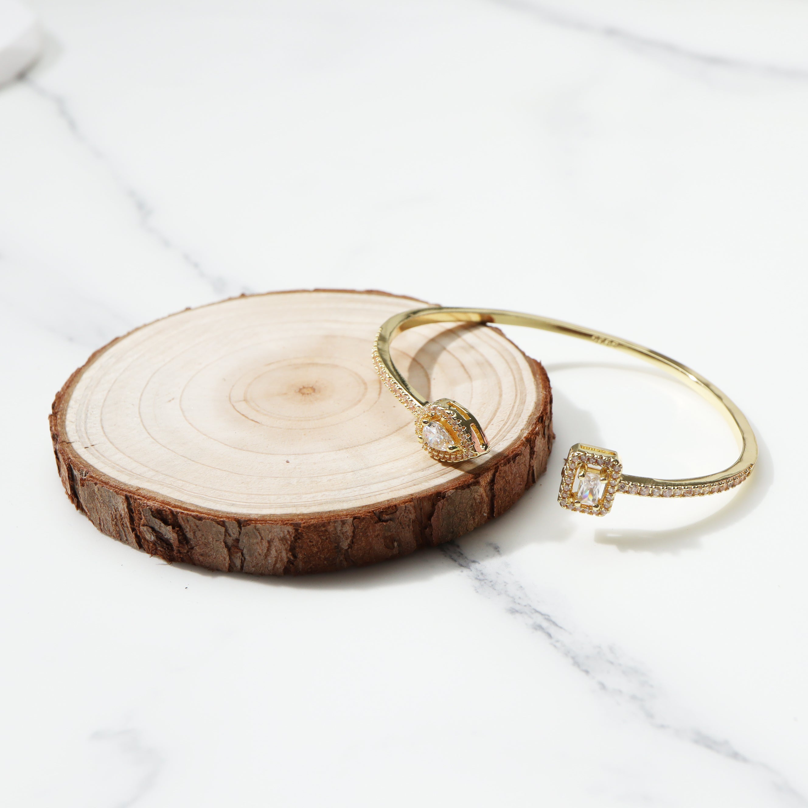 Made from durable brass with a copper base and finished with 18K gold plating, this lightweight bangle is available in gold and silver tones to suit any style. Perfect for anniversaries, engagements, weddings, parties, or gifting, it’s a versatile accessory that shines in every setting.