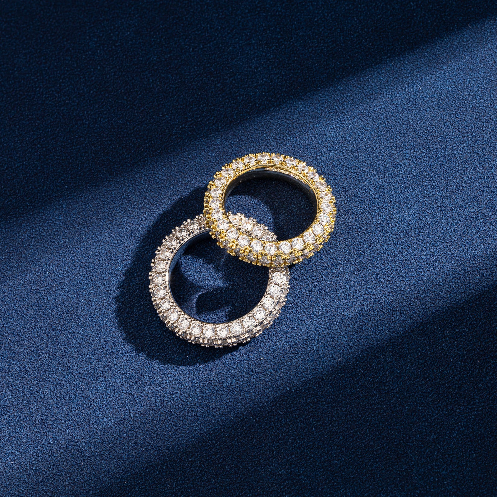Hip-Hop Inspired Triple-Sided Bling – 18K Gold/White Gold Plated Ring with AAA CZ for Women & Unisex Style