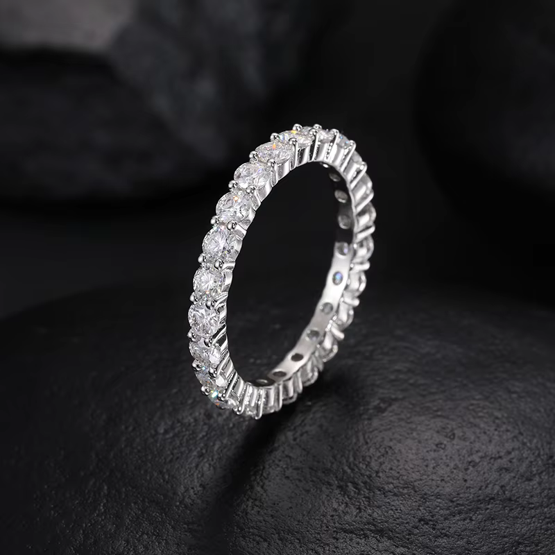 Made with 92.5% pure silver and micro-insert technology, each 3.0mm moissanite stone is meticulously placed to catch light from every angle—offering diamond-level brilliance without the high price tag. Certified by GRA, this iced-out ring brings quality assurance and next-level shine, whether worn solo or stacked with other statement pieces.
