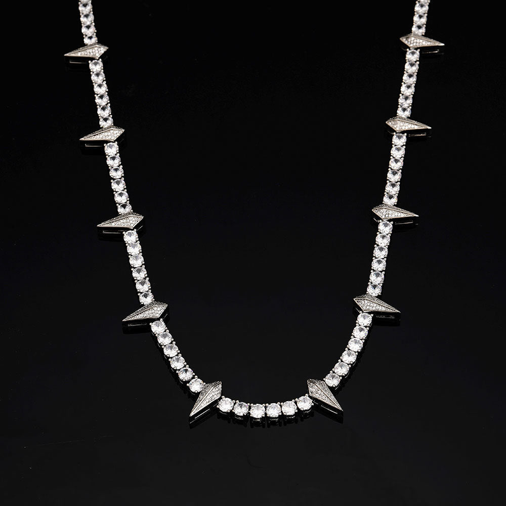 Bring the ultimate level of shine and street style to your wardrobe with the ICE STONE Full Diamond Spike Tennis Chain Necklace. With its luxurious materials, precise craftsmanship, and bold design, this necklace is perfect for those who want to stand out with unrelenting bling.