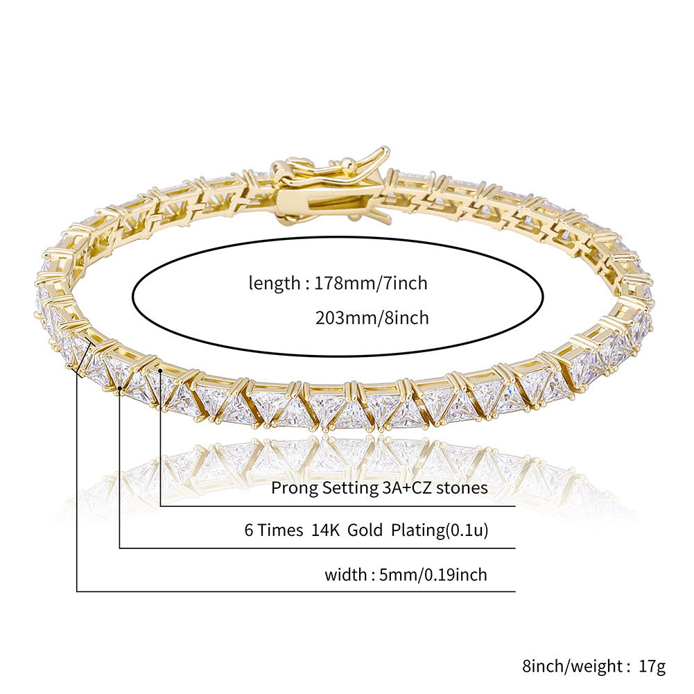 ICE STONE 5mm Triangular CZ Tennis Chain Bracelet – High Quality Iced Out Hip Hop Jewelry for Women & Men