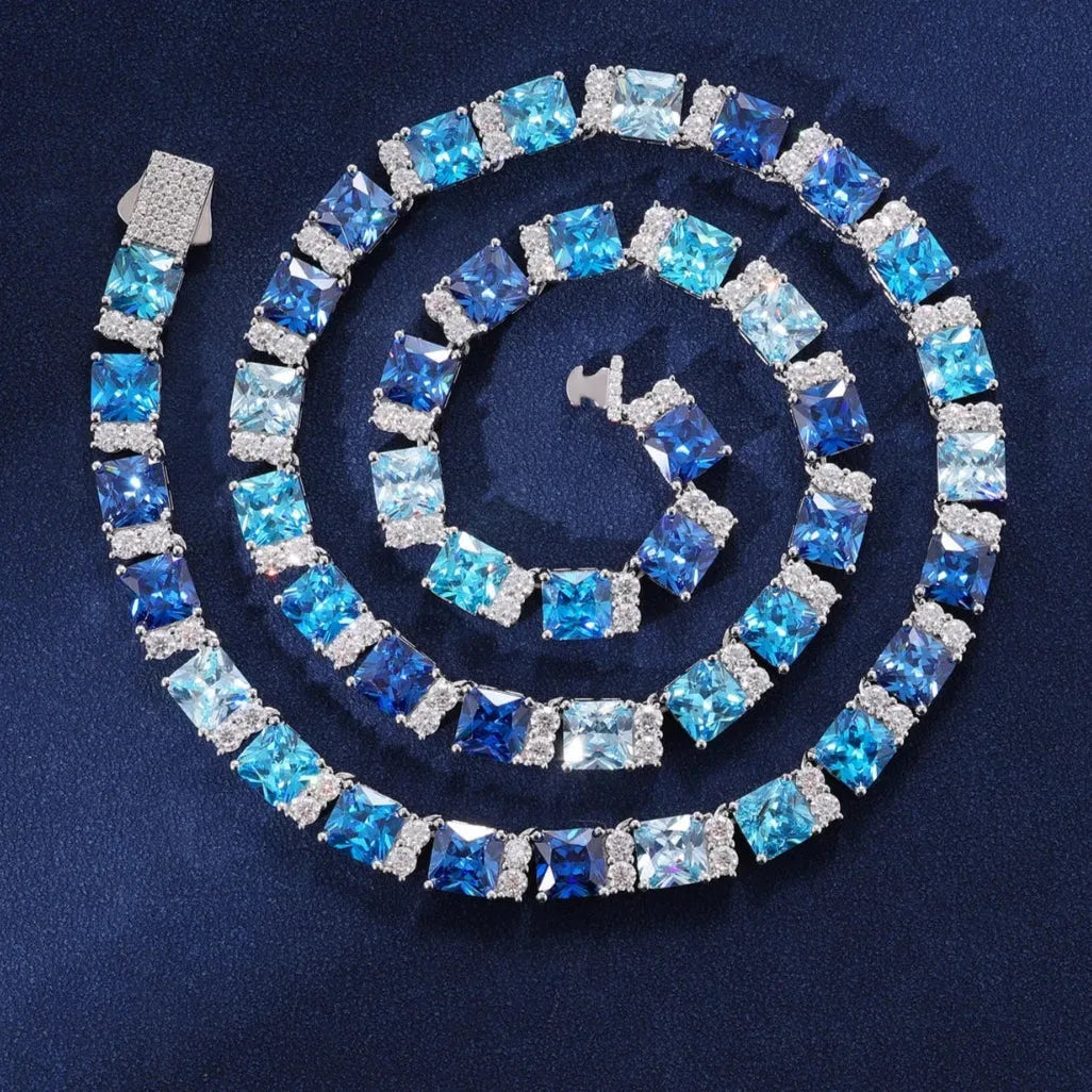 Capture the essence of elegance and style with the ICE STONE Blue Baguette Moissanite Necklace. Designed with VVS D-grade moissanite stones and 925 sterling silver, this luxury necklace showcases a unique blue baguette stone design with a stunning gradient color effect—perfect for summer, parties, or any elegant occasion.