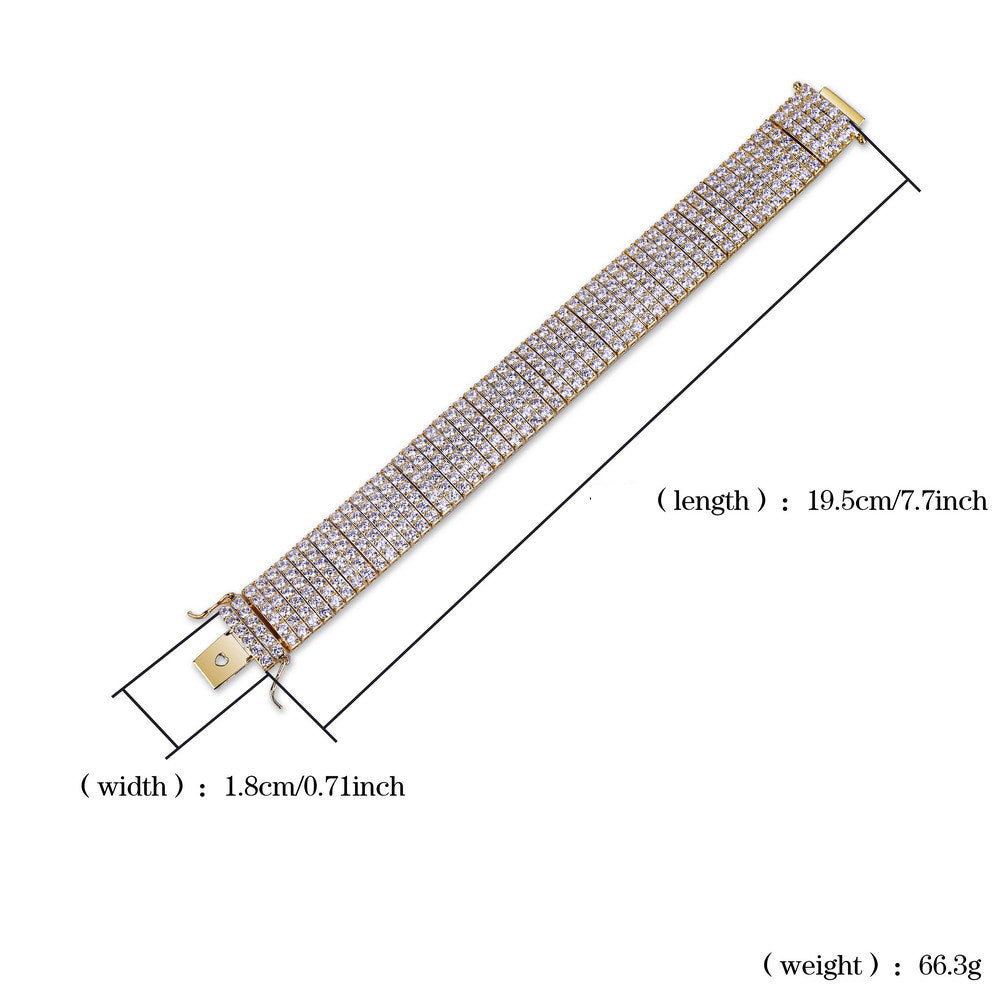 Step up your jewelry game with this bold and glistening ICE STONE™ 6-row iced out bracelet. Crafted from durable brass copper and encrusted with high-grade AAA+ cubic zirconia, this statement piece blends punk energy with high-fashion shine. Whether you're dressing up for a night out or making a daily statement, this piece is made to turn heads.