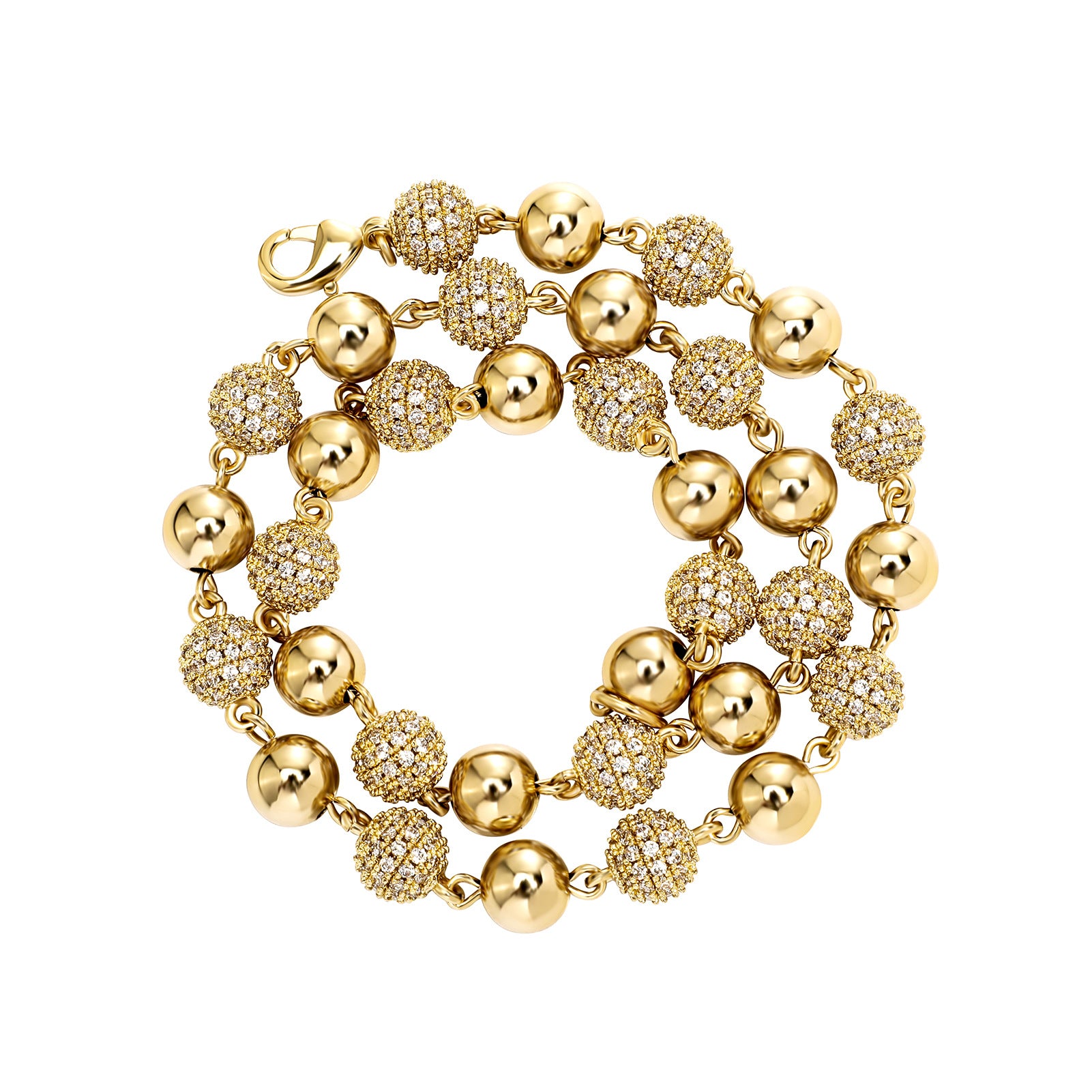 ICE STONE 6mm & 8mm Punk Style Ball Bracelet – Gold Plated AAA Cubic Zircon Iced Out Diamond Ball Bangle for Couple