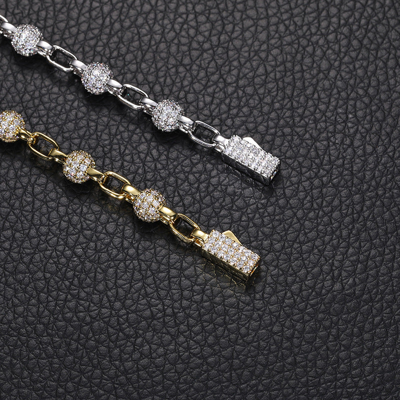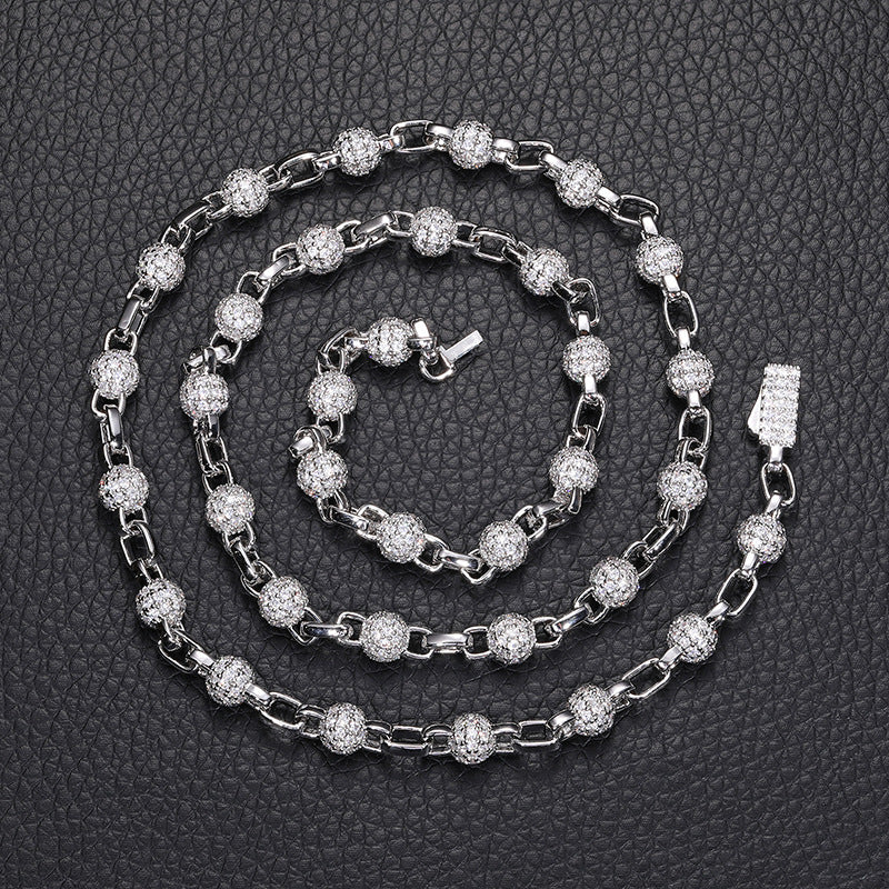 Iced Out Beaded Necklace – 6mm 18K Gold Plated Ball Chain with 5A CZ, Hip Hop Jewelry for Men and Unisex Wear