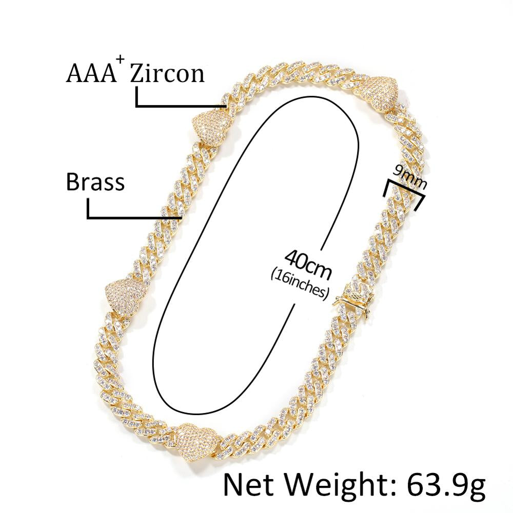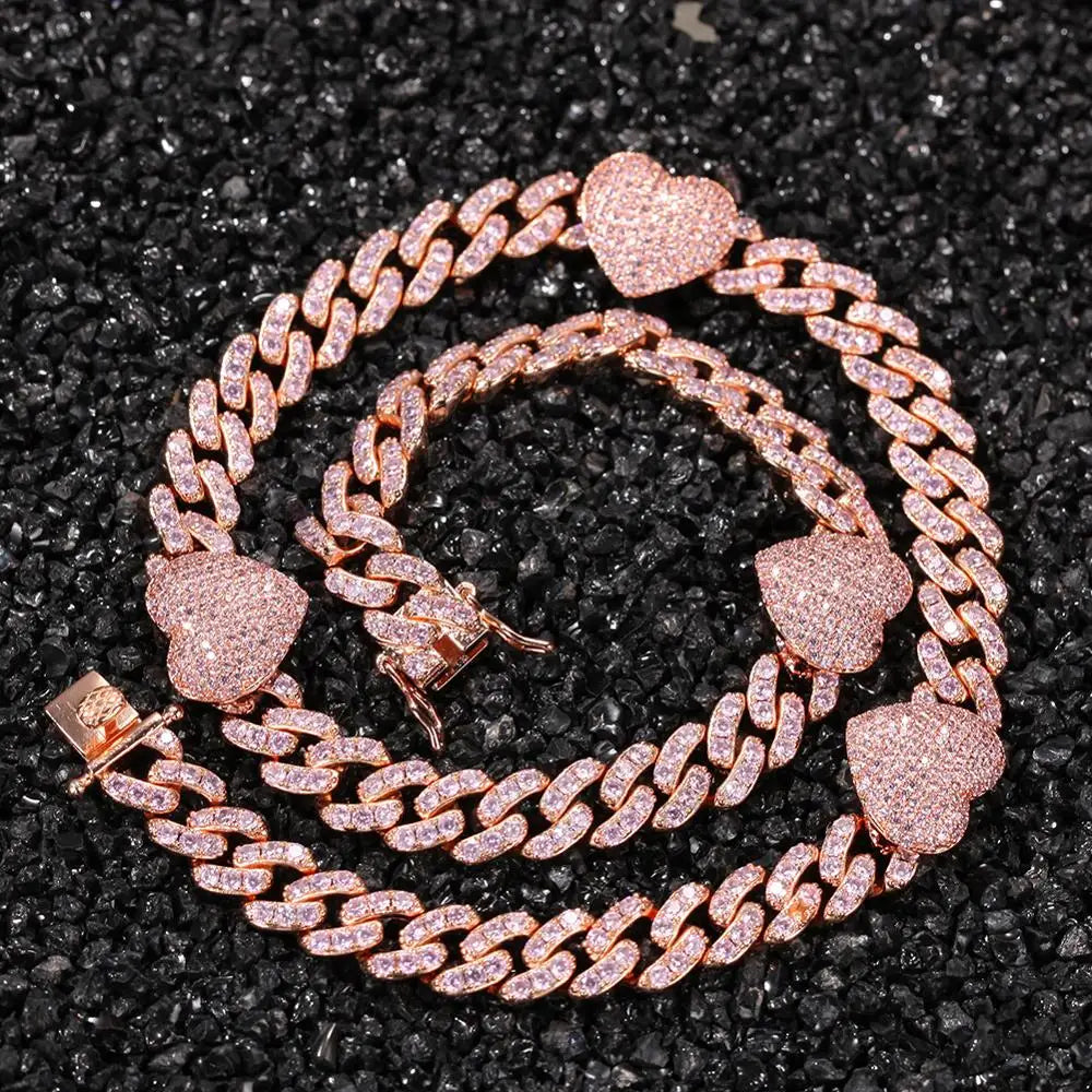 Iced Out 8mm Heart-Shaped Cuban Link Necklace & Bracelet - CZ Jewelry with Zircon Stone Gift for Women