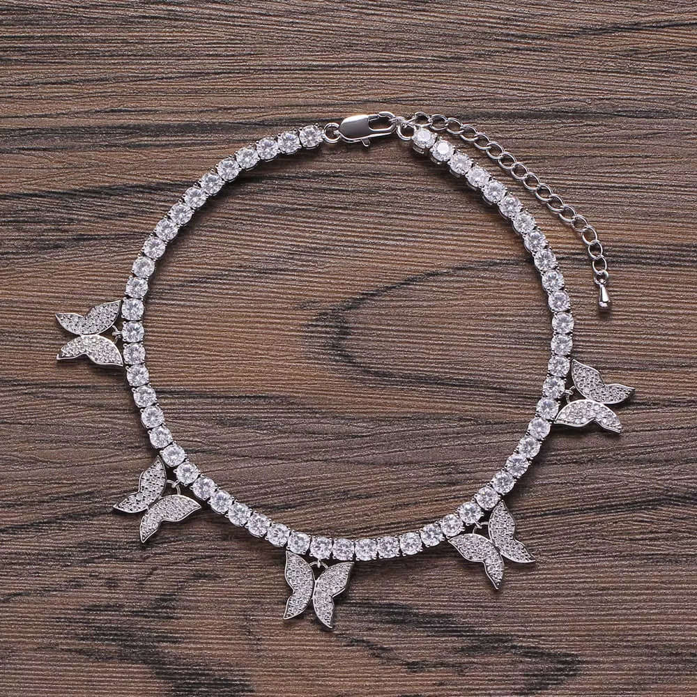 Featuring AAA+ Asscher-cut cubic zirconia inlaid using micro-insert technology, each stone sparkles like a real diamond, while the iconic Cuban link chain adds a bold and timeless touch. The delicate butterfly accents give the anklet a unique twist—perfect for hip-hop lovers who appreciate flair with finesse.