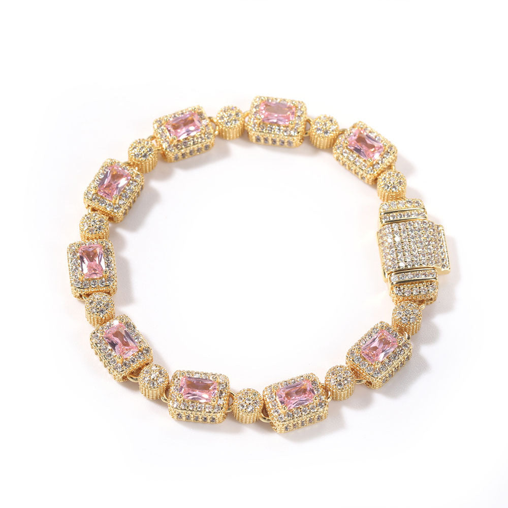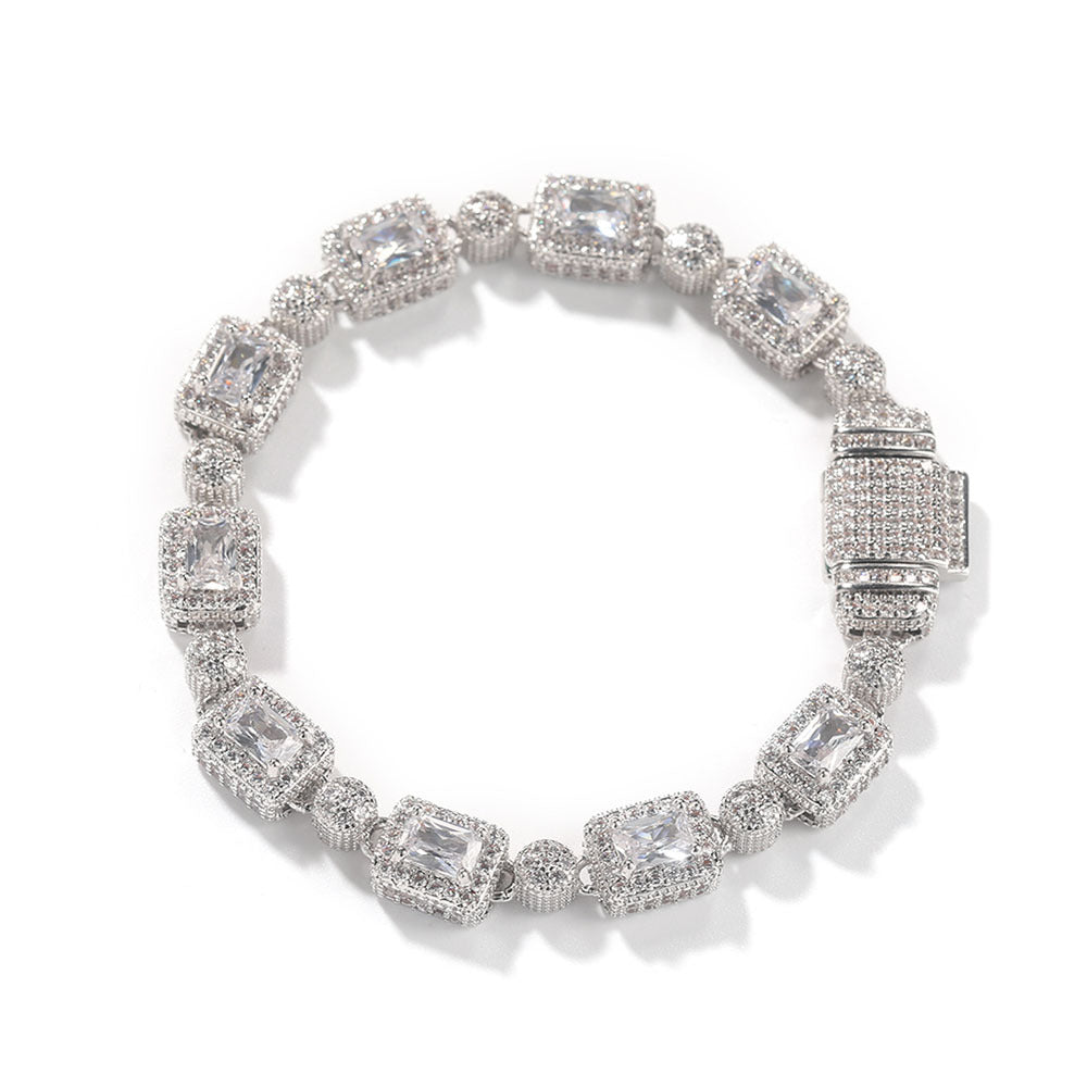 Newest Hip Hop 8mm Tennis Necklace - 18K Gold Plated Square Diamond Chain Bracelet