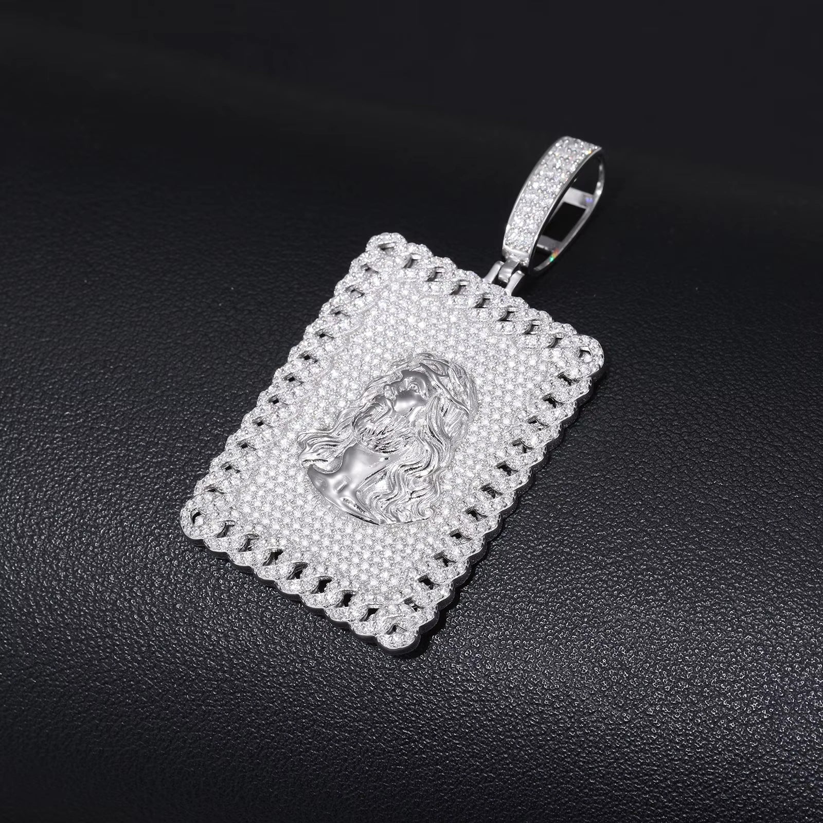 925 Silver Rectangle Micro Pave Gemstones VVS D Moissanite Rhodium Plated Jesus Pendant Hip Hop Style Charm Pendants