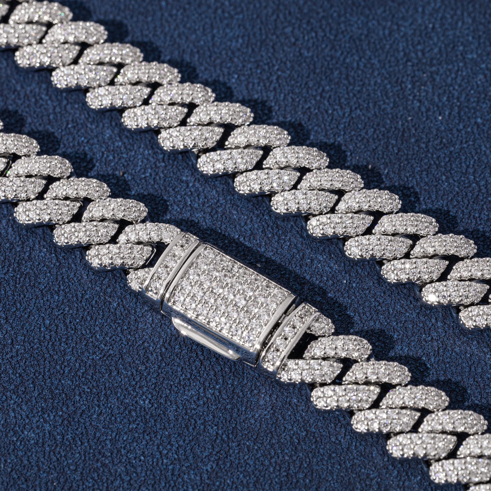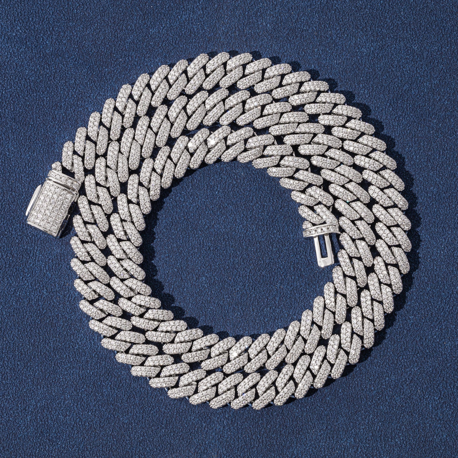The 9mm 2-Row Diamond Iced Prong Cuban Link Necklace is an exquisite piece of hip hop jewelry that seamlessly combines luxury with style. Crafted from brass and plated with 18K gold, this necklace features two rows of iced-out prong-set stones, giving it an impressive sparkle. The 5A cubic zirconia (CZ) stones are cut in a princess cut, adding to the shine and overall impact of this statement piece.