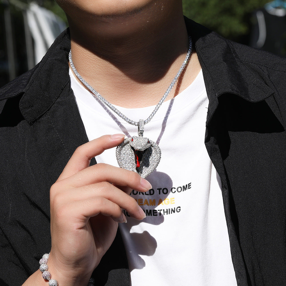 Iced Out Cobra Snake Pendant – Hip Hop Animal Charm Necklace (Gold/White Gold)