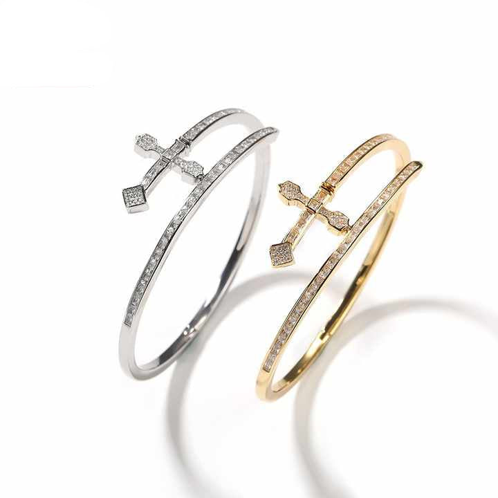 ICE STONE Iced Out Wholesale Jewelry Adjustable Cross Bracelets Brass 18K Gold Plated 5A Bling CZ Diamond Bangle Bracelets