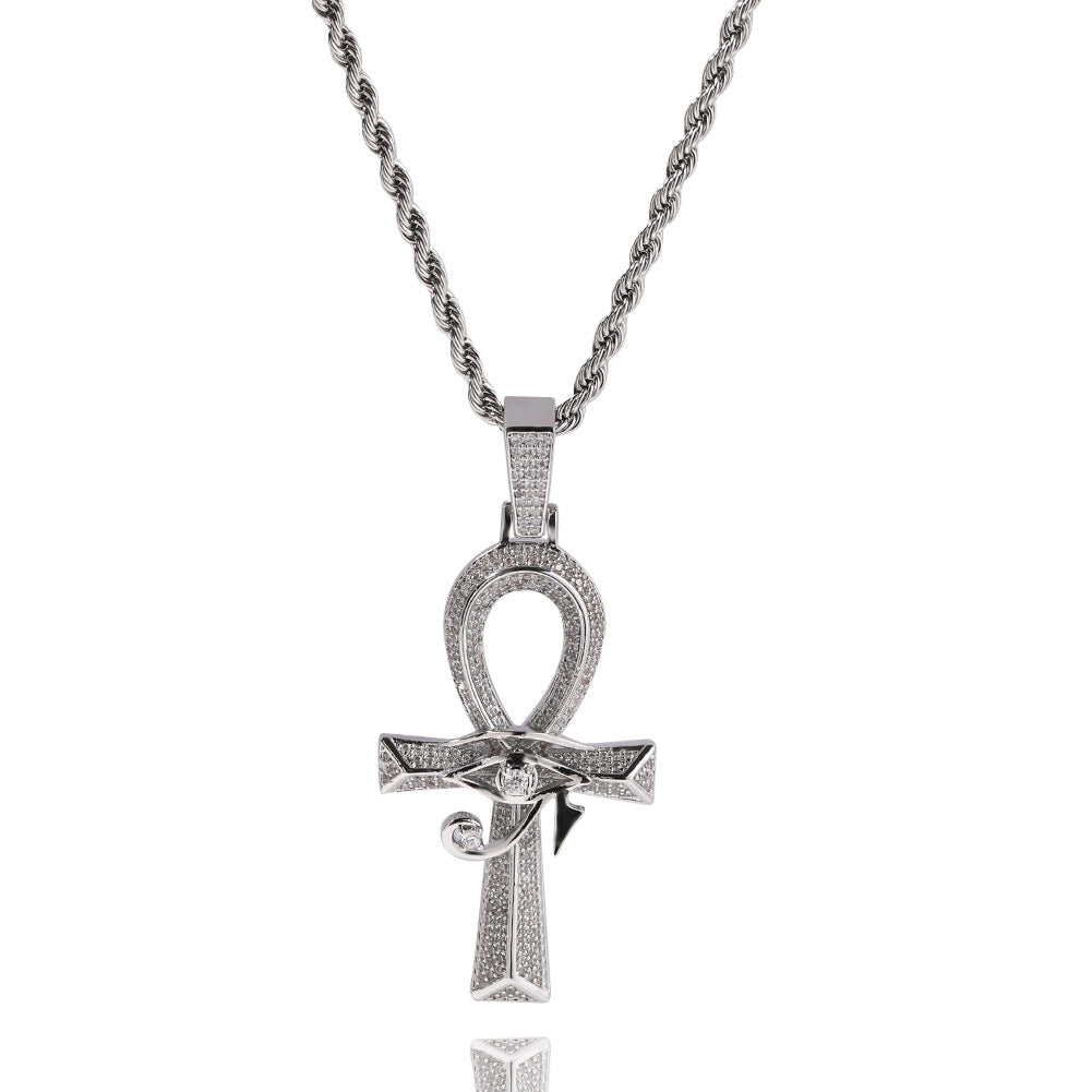 ICE STONE Hip Hop Jewelry Ankh Cross Pendant | Eye of Horus Amulet | 18K Gold Plated Brass Necklace
