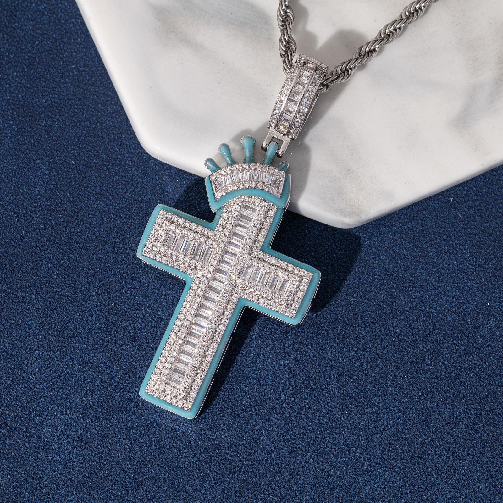 Elevate your jewelry game with the ICE STONE Baguette Crown Cross Pendant, a bold and stylish statement piece designed for those who live and breathe streetwear fashion. This crown-topped cross pendant combines punk attitude with hip hop bling, iced out with premium round-cut cubic zirconia and finished in luxurious 18K gold or rhodium plating.