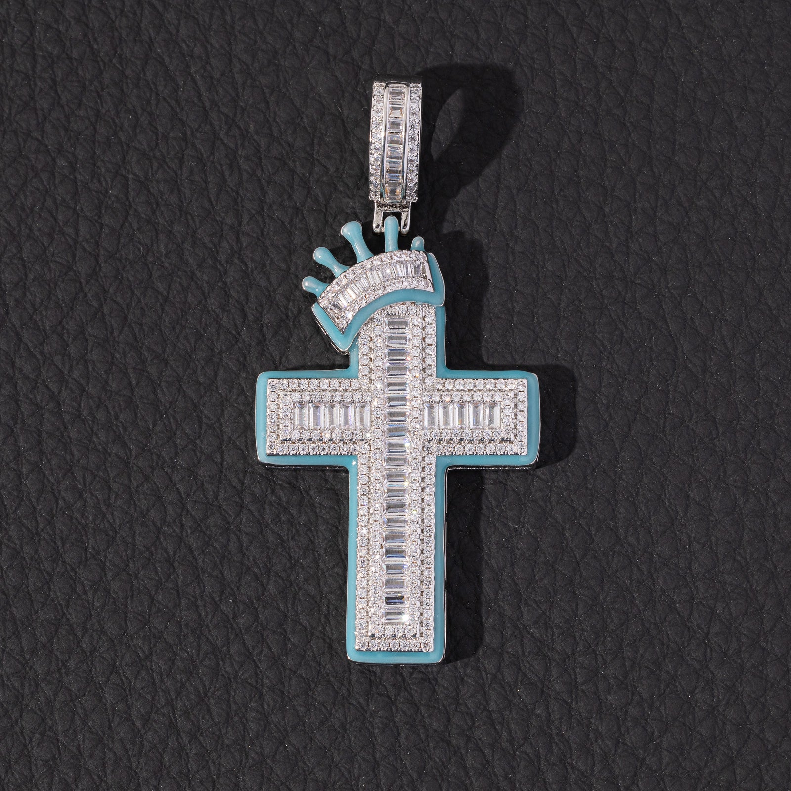 Made from durable brass and stainless steel, this pendant delivers shine, strength, and standout appeal. Whether you're dressing up for a special event or upgrading your daily fit, this iced-out crown cross necklace is built to impress.