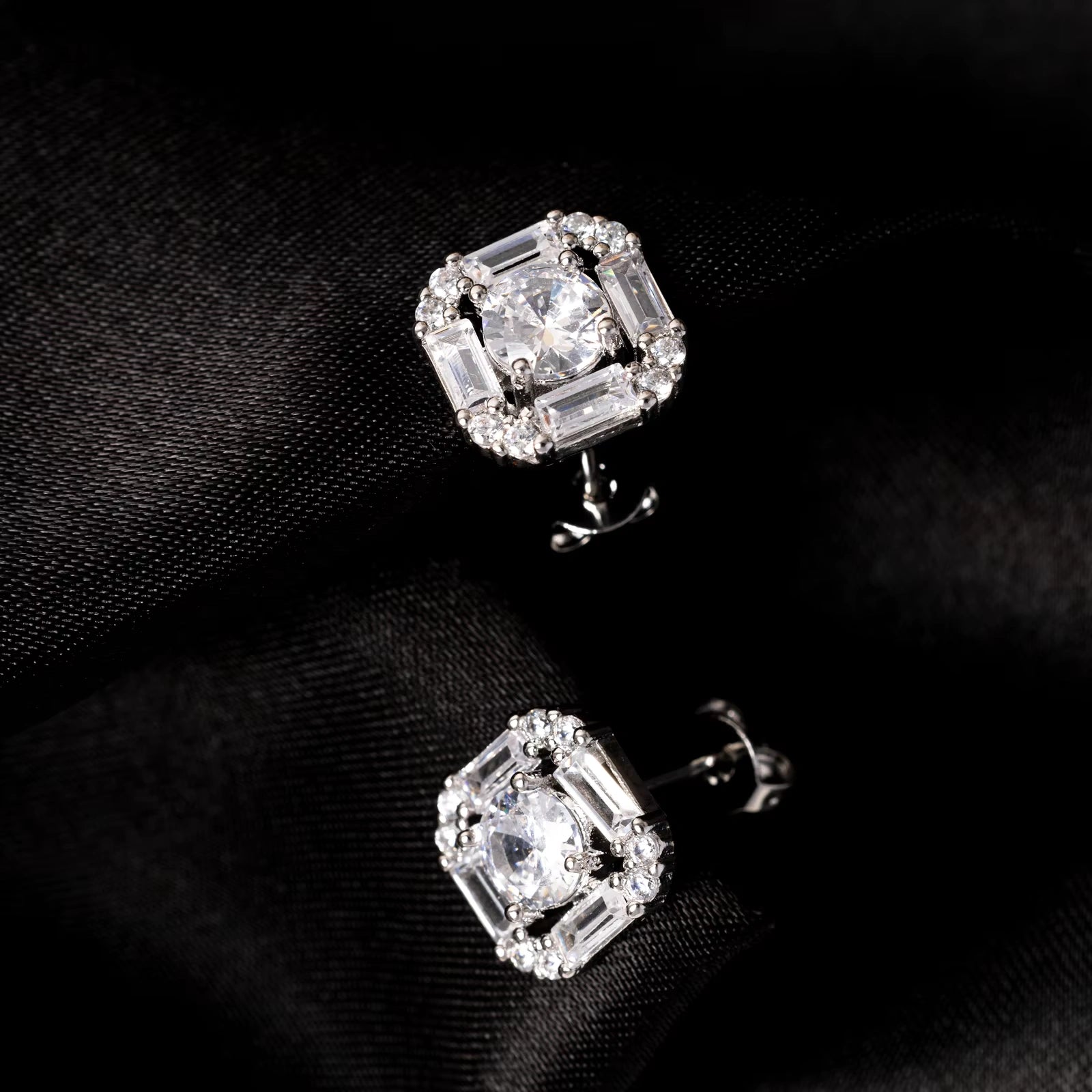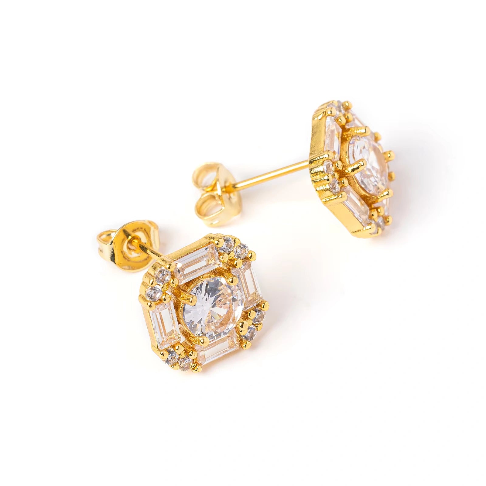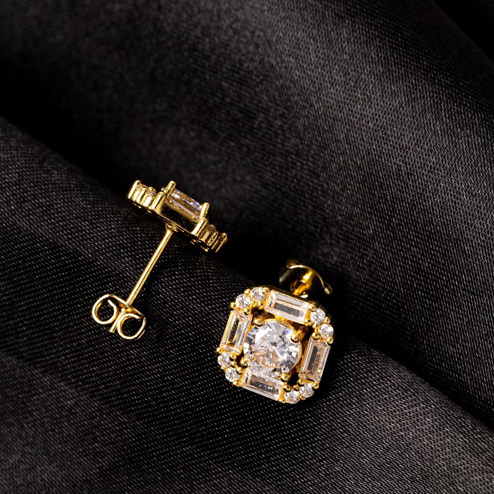 Baguette Diamond Stud Iced Out Earrings 18K Gold Plated Fine Jewelry Earrings Women Jewelry Valentines Day Gift