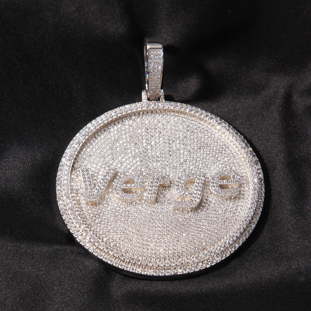 Make a bold statement with this 8cm Big Size Custom Circle Pendant Necklace, a stunning piece of hip-hop inspired iced out jewelry designed to showcase your name or custom text in eye-catching brilliance. Crafted for those who love luxury and individuality, this pendant necklace is perfect for turning heads at parties, weddings, or any special event.