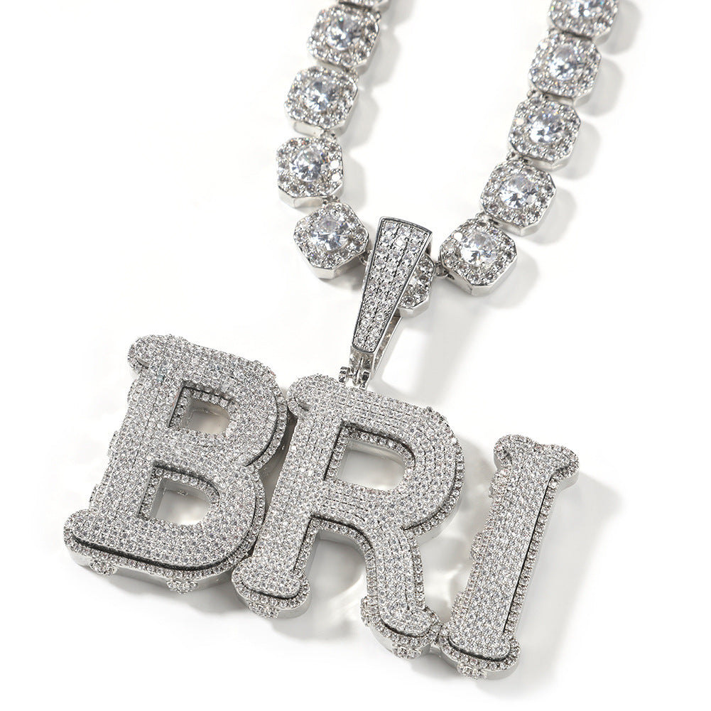 Make a bold statement with the Big Size Thick Custom Name Necklace, designed for those who want to showcase their unique style. This iced-out pendant features a custom name encrusted with 5A cubic zirconia (CZ) stones, giving it an eye-catching shine. Crafted from brass and plated with 18K gold, rhodium, or rose gold, this necklace is a stunning addition to any jewelry collection.