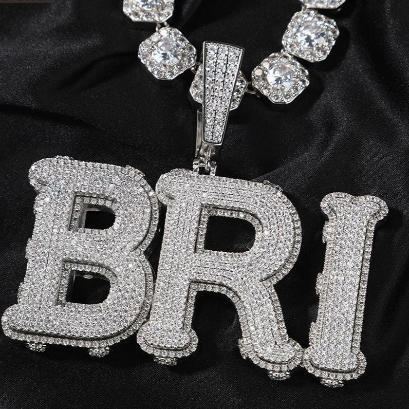Custom Name Necklace, Big Size Custom Pendant, Iced Out Name Pendant, 5A CZ Name Necklace, 18K Gold Plated Necklace, Princess Cut Name Pendant, Claw Set Name Necklace, Shiny Custom Pendant, Women’s Custom Necklace, Personalized Jewelry