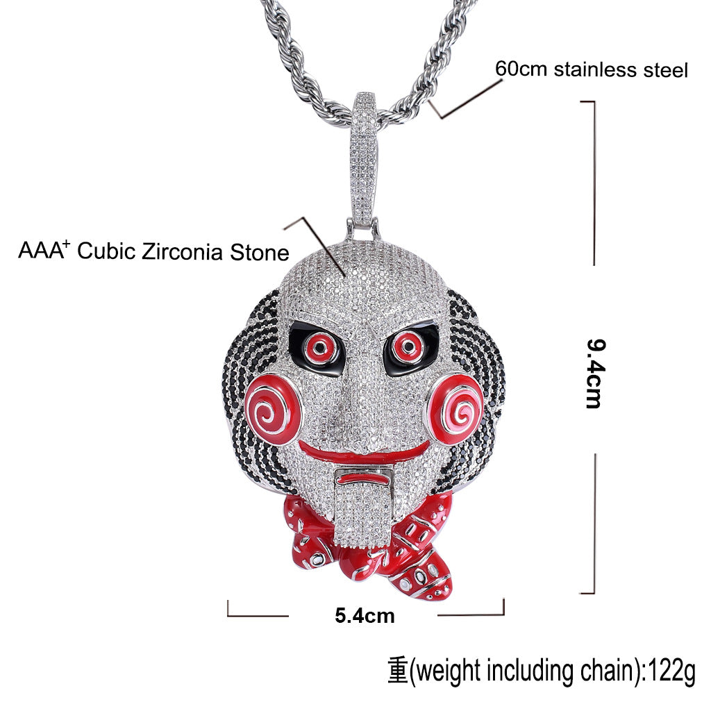 Big Size Horror Mouth Movable Pendant Necklace – Iced Out Hip Hop Jewelry with AAA Cubic Zirconia