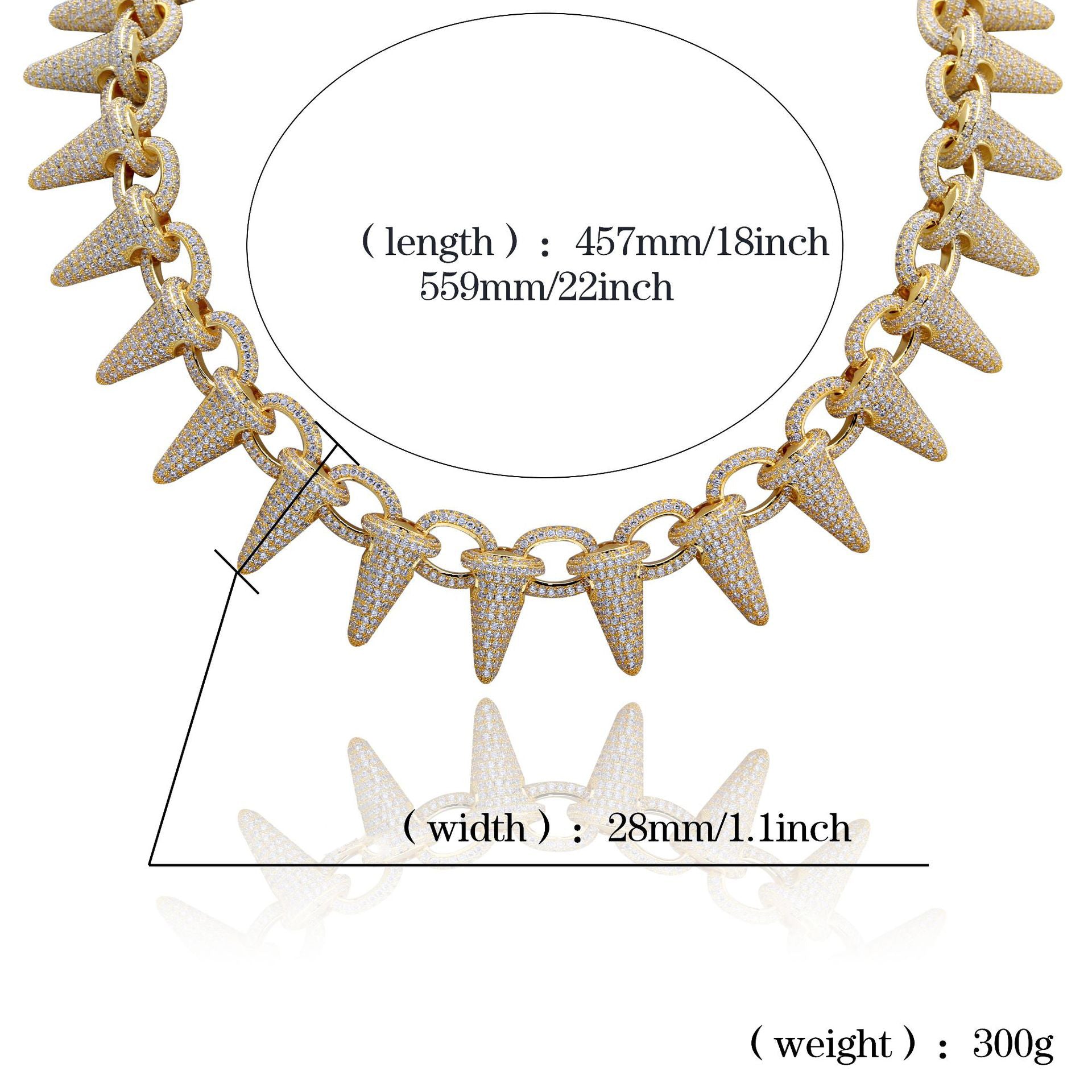 Introducing the Big Rivet Design Rock Punk Style ICE STONE Tennis Necklace, an audacious statement piece that redefines fashion with its exaggerated Cuban chain and bold ice cream-shaped pendant. Crafted with a durable brass base and plated in your choice of 18K gold, platinum, or rhodium, this necklace is designed to catch the eye and turn heads. Featuring AAA+ Cubic Zircon stones, this piece delivers a high-end look with exceptional shine, making it the perfect accessory for any occasion, especially anniversaries.