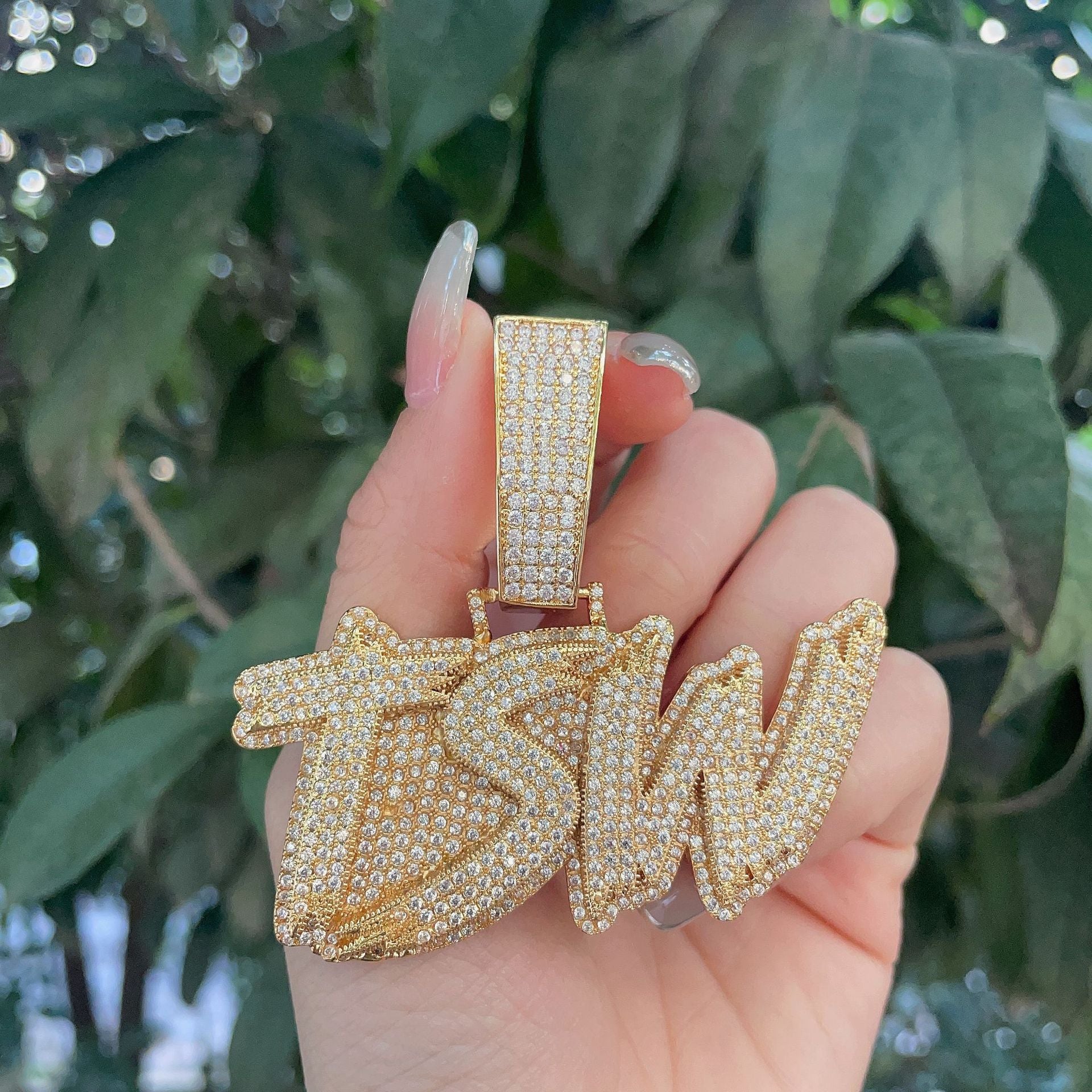 Stand tall, shine hard,and let the world know who you are with the ICE STONE Big Size Iced-Out Name Pendant.
