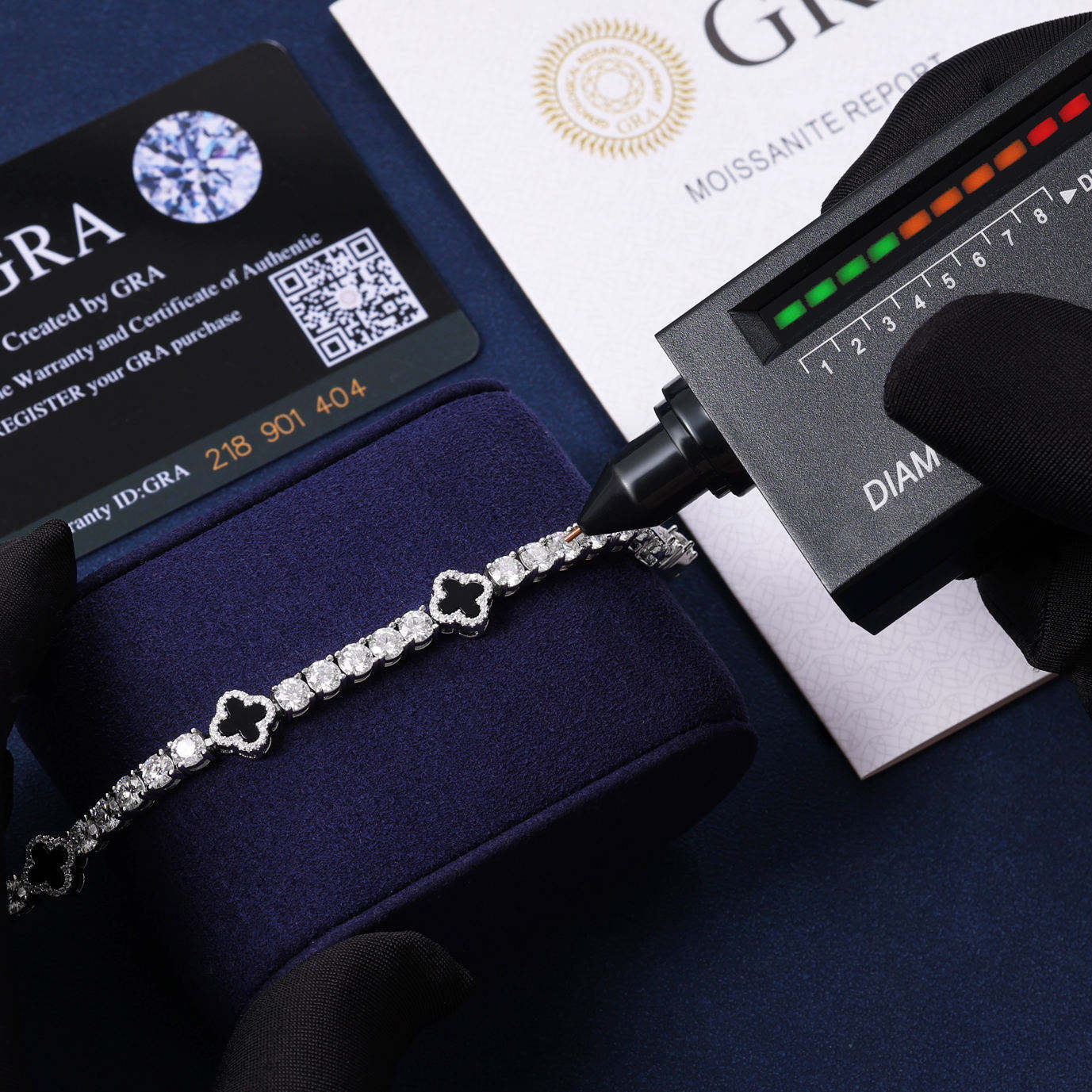 Elevate your jewelry game with this Hot Selling Black Clover Tennis Chain, featuring 4mm VVS D Moissanite stones intricately set into premium 925 sterling silver. With its eye-catching black clover pattern, this bracelet blends luxury, symbolism, and hip hop style into one unforgettable piece.